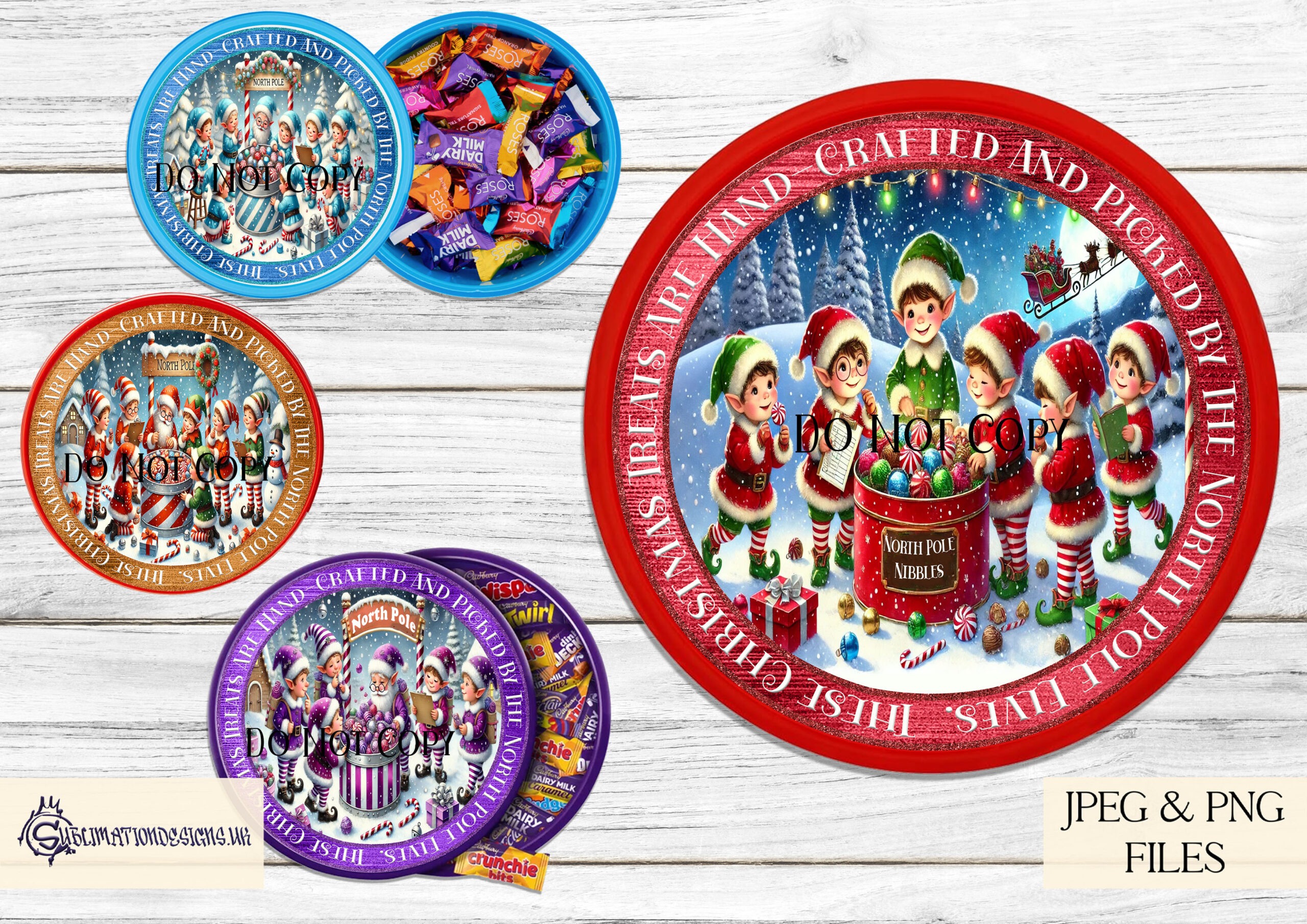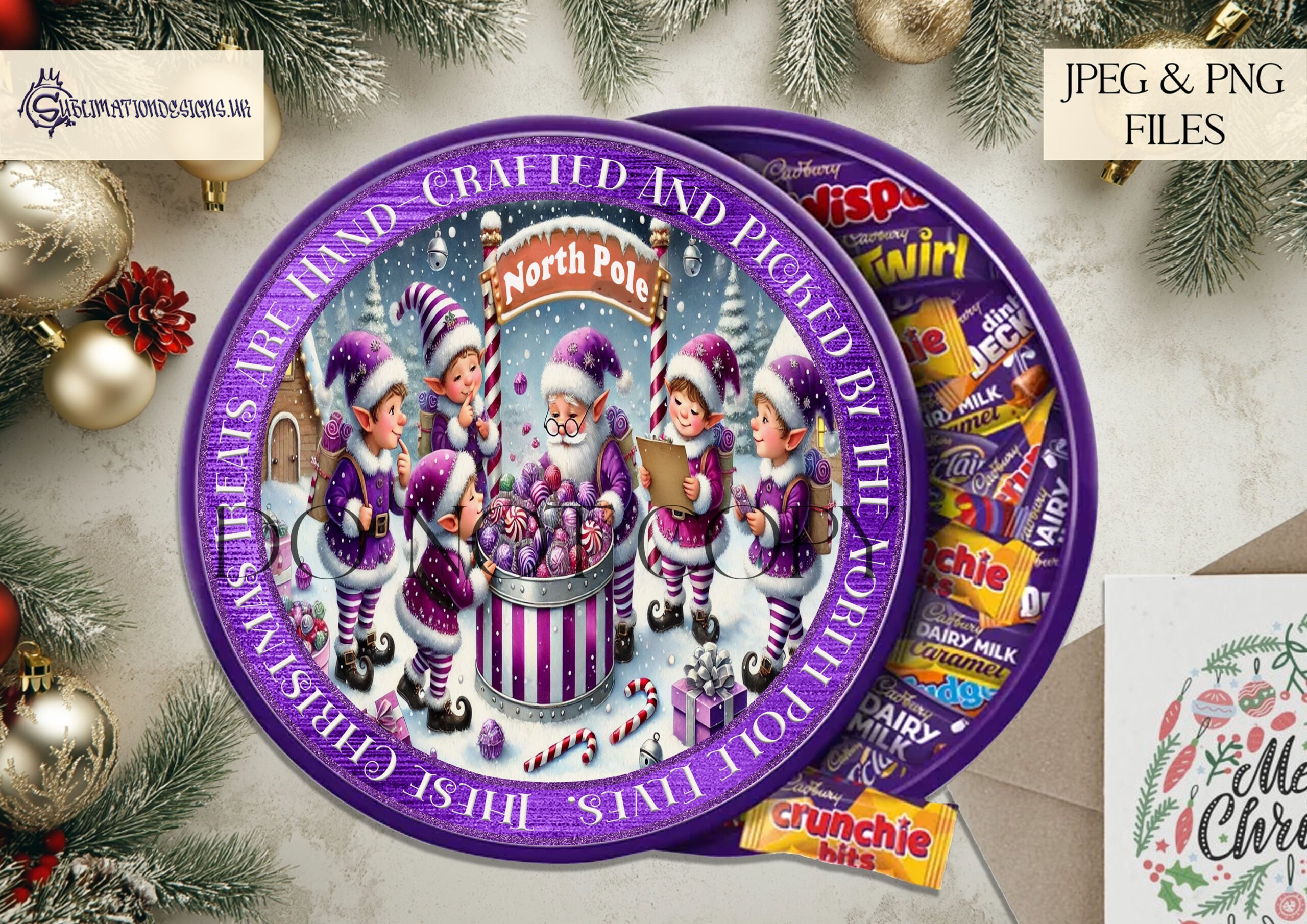 Bring the magic of the North Pole to your holiday celebrations with our North Pole Elves Tub Topper Designs Set! This festive collection features 8 colourful designs, perfect for adorning sweet tubs such as Celebrations, Heroes, Roses, and Swizzles. These delightful toppers are ideal for adding cheer to any Christmas gathering, making them a hit with children and adults alike.