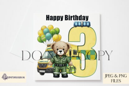 Celebrate birthdays with a heroic touch using our Paramedic Teddy Bear Birthday Numbers Design Set! This adorable set includes numbers 1 to 9, each featuring a paramedic teddy bear alongside an ambulance-themed setup. To customise your projects, the set also includes two optional coloured hair bows and balloon elements, perfect for creating personalised birthday cards, badges, apparel, and more.