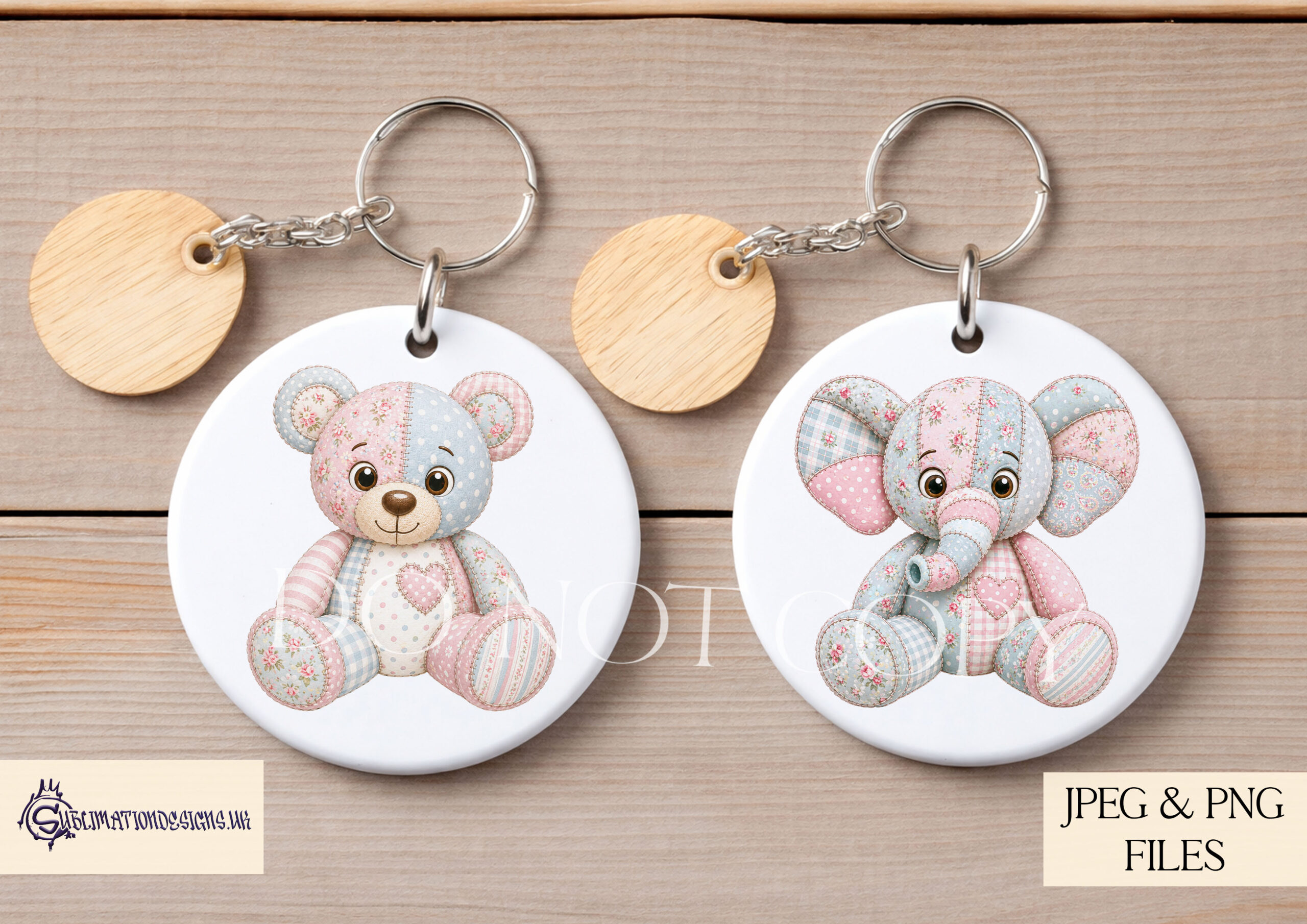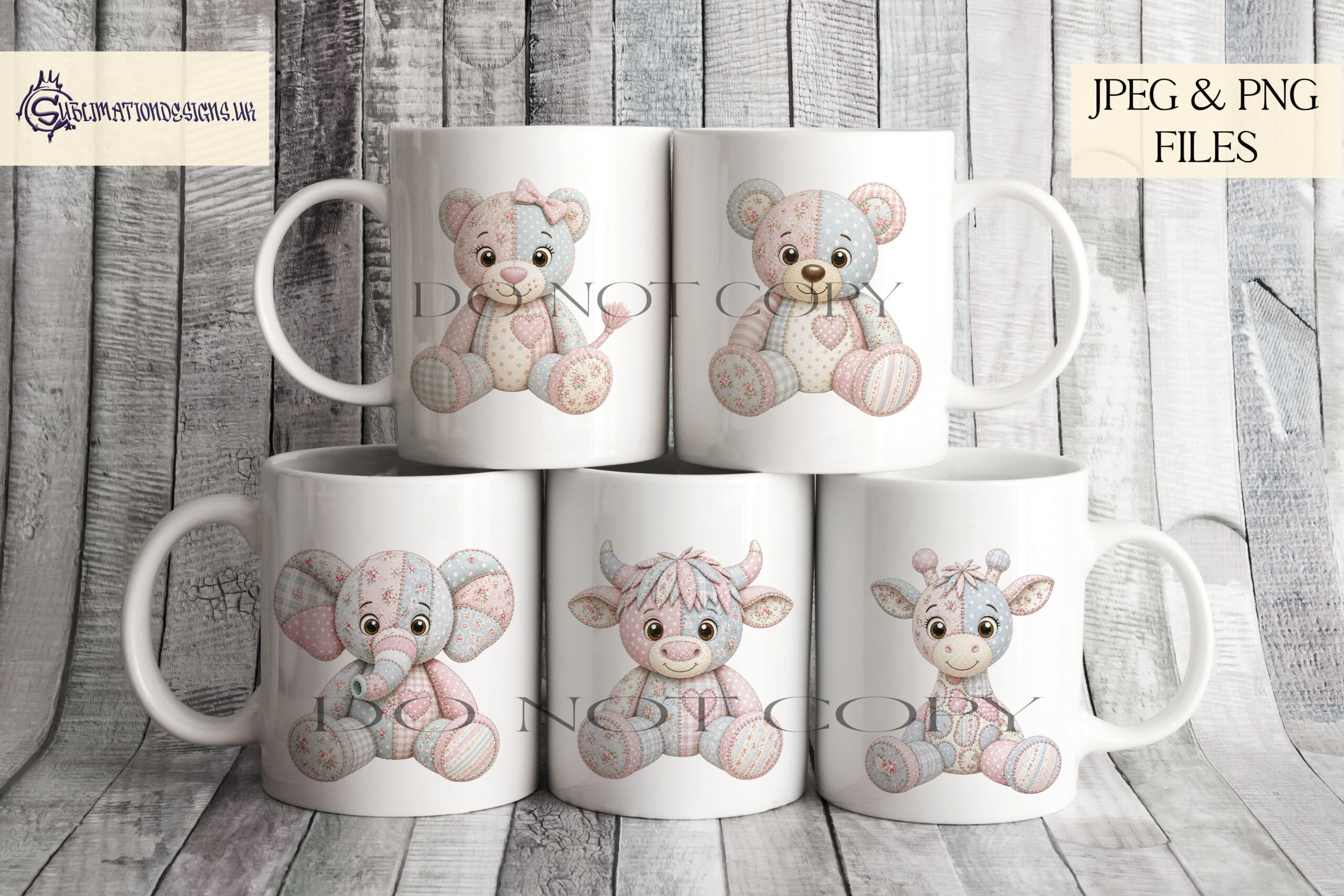 Pastel Patchwork Animal Teddies Set of 5 | 5 Designs | JPEG and PNG | 4 Mock Ups | Commercial Licence