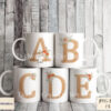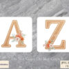 26 individual alphabet letters featuring peach floral and rose gold foil designs