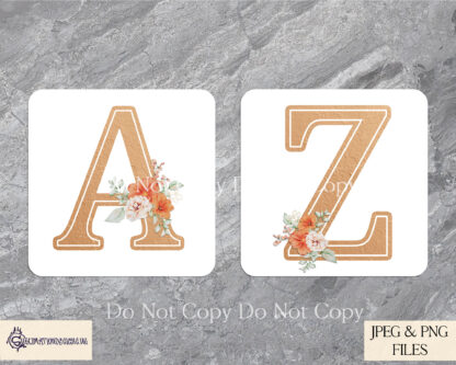 Peach Floral Rose Gold Foil Alphabet – Set of 26