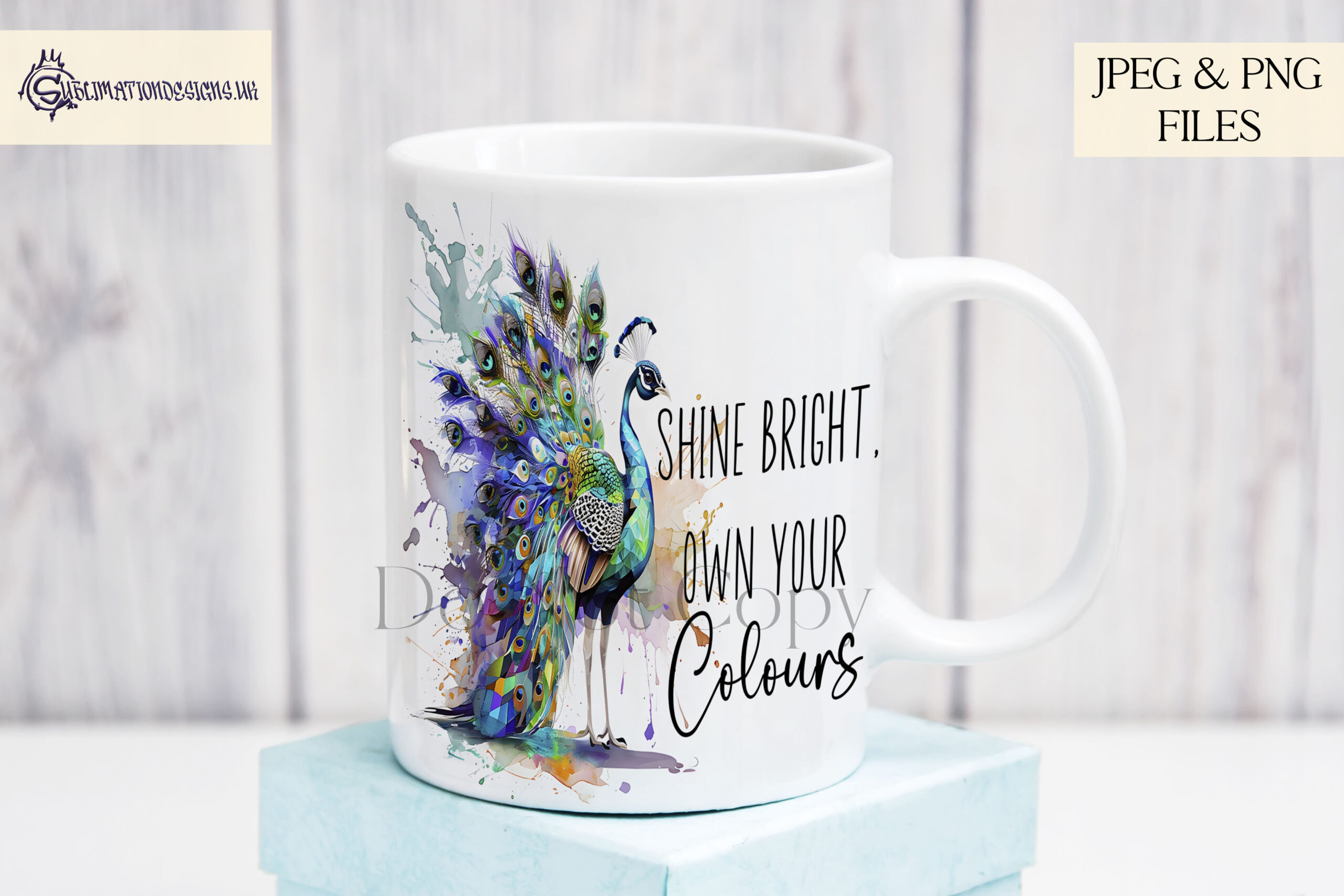 The Peacock Positivity Design Set is a bold and vibrant collection, featuring a stunning paint splash peacock, designed to inspire confidence and self-expression. This colourful and artistic sublimation set is perfect for motivational gifts, home décor, and personalised crafting projects.