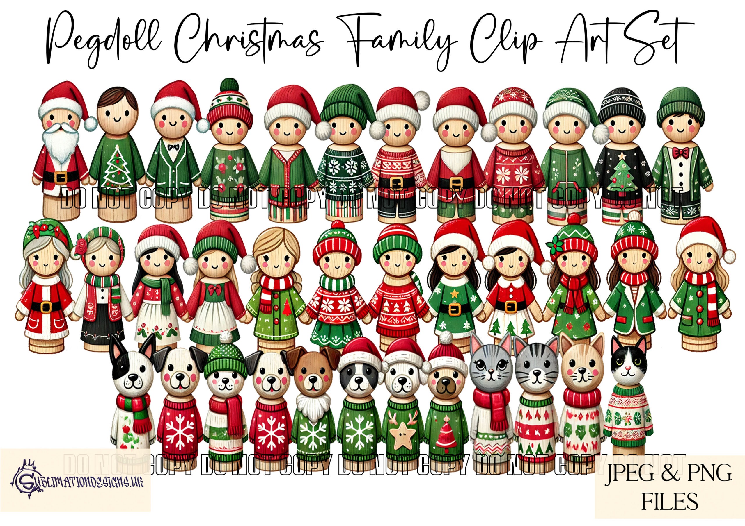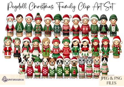 Peg Doll Family Clip Art Set – 38 Customisable Elements for Family Christmas Products