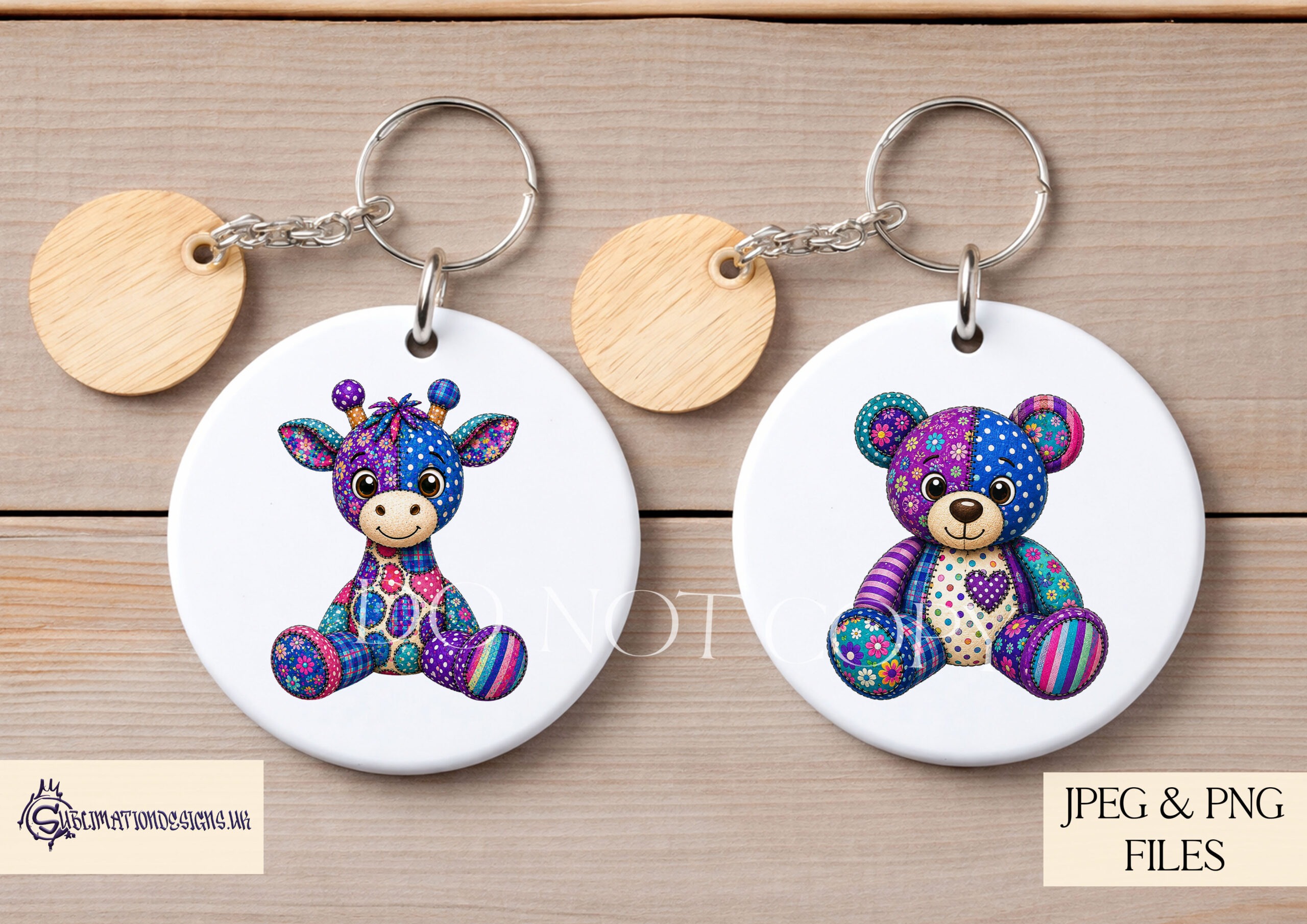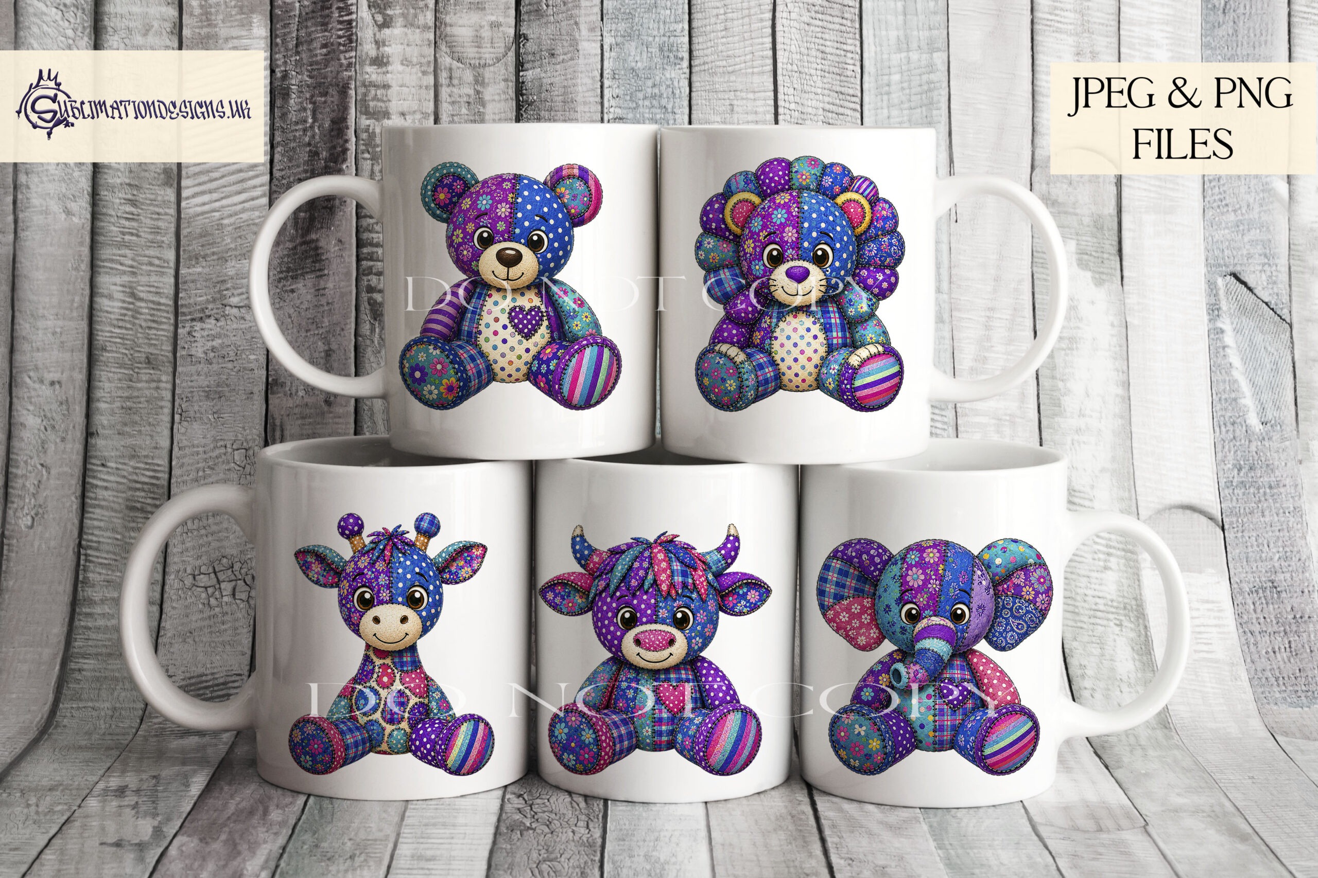 Purple Patchwork Animal Teddies Set of 5 | 5 Designs | JPEG and PNG | 4 Mock Ups | Commercial Licence