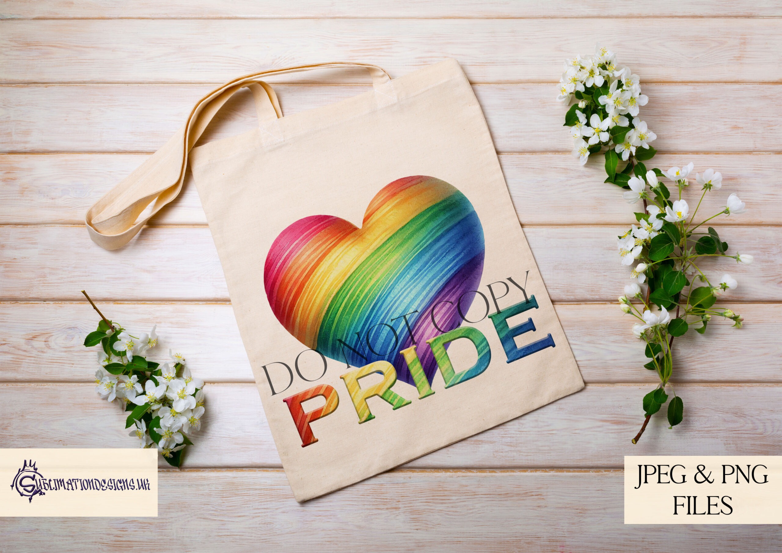 Celebrate love, diversity, and pride with our vibrant Rainbow Love Heart PRIDE Design. Featuring a bold rainbow love heart with the word “PRIDE” across it, this design is perfect for creating eye-catching products for pride events or year-round representation. Whether it’s on t-shirts, tote bags, keyrings, or other items, this design is sure to make a statement.
