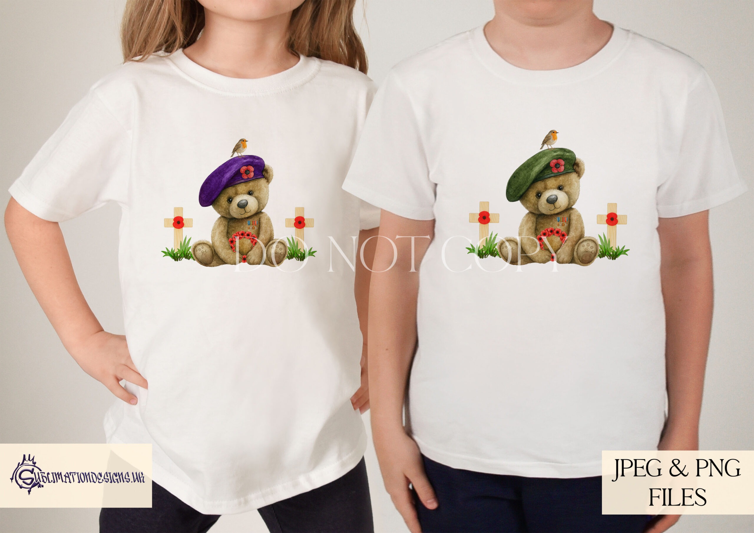 Remembrance Day Beret Bears Designs Set – 6 Colour Variations | JPEG & PNG | 3 Mock-Ups | Commercial Licence