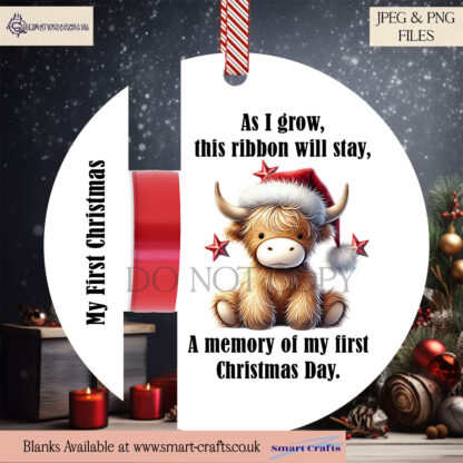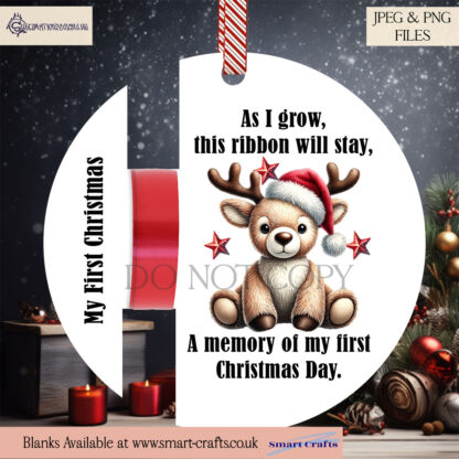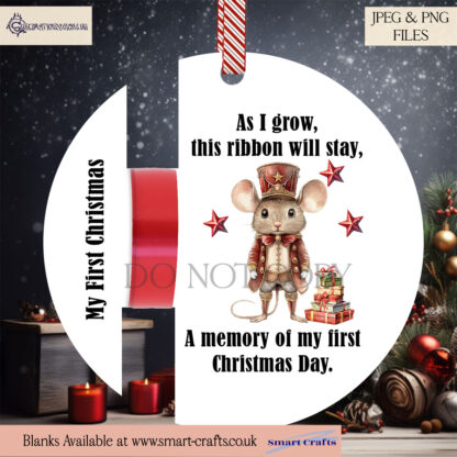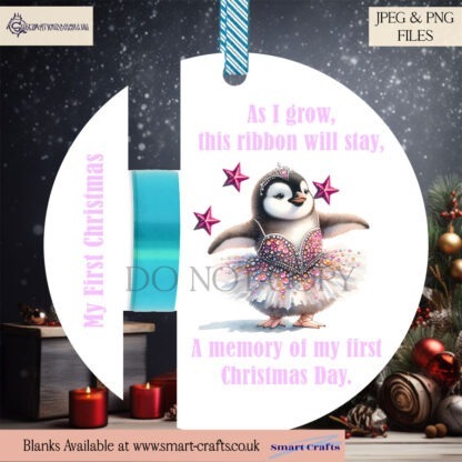 Celebrate the joy of Christmas with our Ribbon Keepsake Bauble Sublimation Designs Set, designed specifically for Smart Crafts Ribbon Keepsake Baubles! This charming collection features 6 unique characters, perfect for commemorating “My First Christmas” baubles and creating personalised holiday decorations. Whether for gifts or your own festive bauble collection, these designs will add a special touch to your Christmas celebrations.