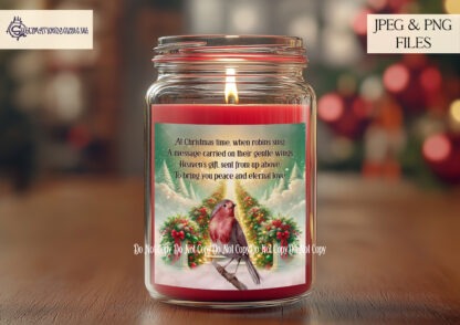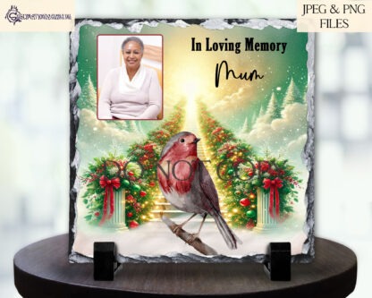 Remember loved ones during the holiday season with our Robin Heaven Memorial Christmas Design Set. This heartfelt collection features a robin in a serene, Christmas-themed heaven background, symbolising the spirit of remembrance. The set includes 6 designs: a textless version, a photo-ready version for adding a personalised image, and a version with our exclusive memorial poem. Each design is provided in both square and round templates, making them ideal for baubles, slates, candles, and more.