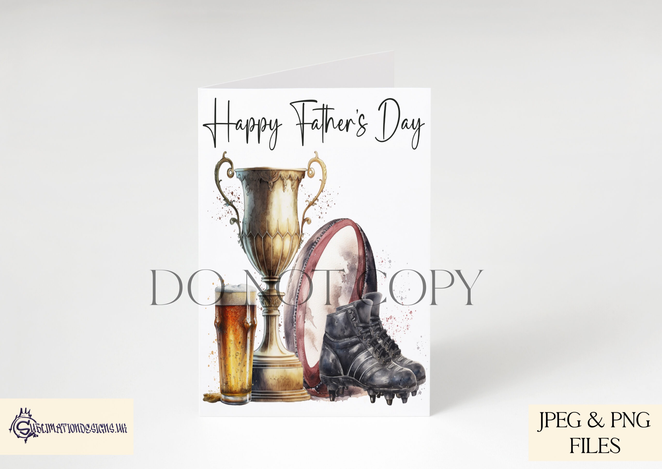 Each completed design includes a rugby ball, trophy, and boots, paired with your choice of beer, lager, whiskey, or no alcohol, and includes versions with and without “Happy Father’s Day” wording. Ideal for sports fans and drink lovers alike, these designs are perfect for crafting mugs, cards, wall art and other personalised gift items.