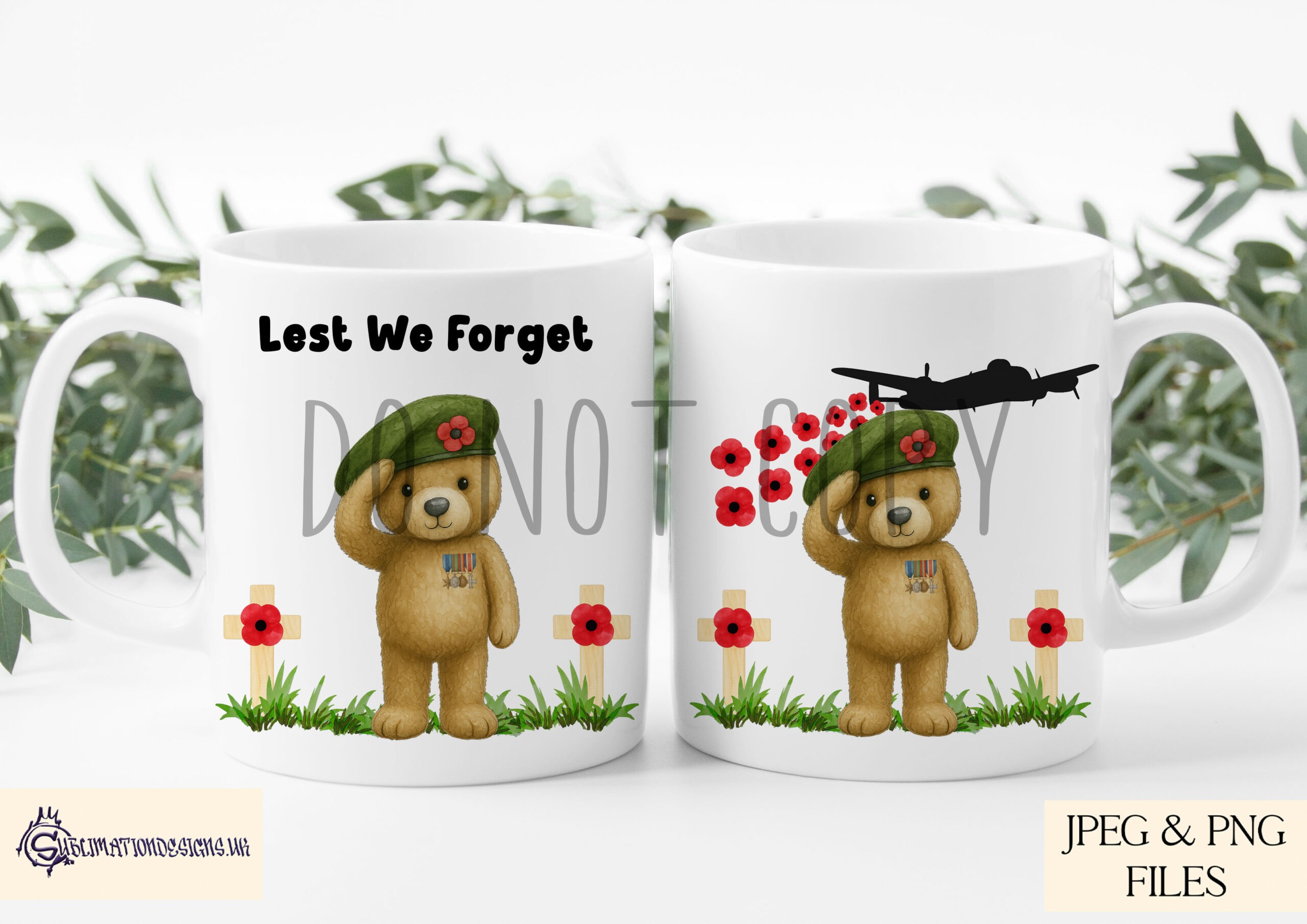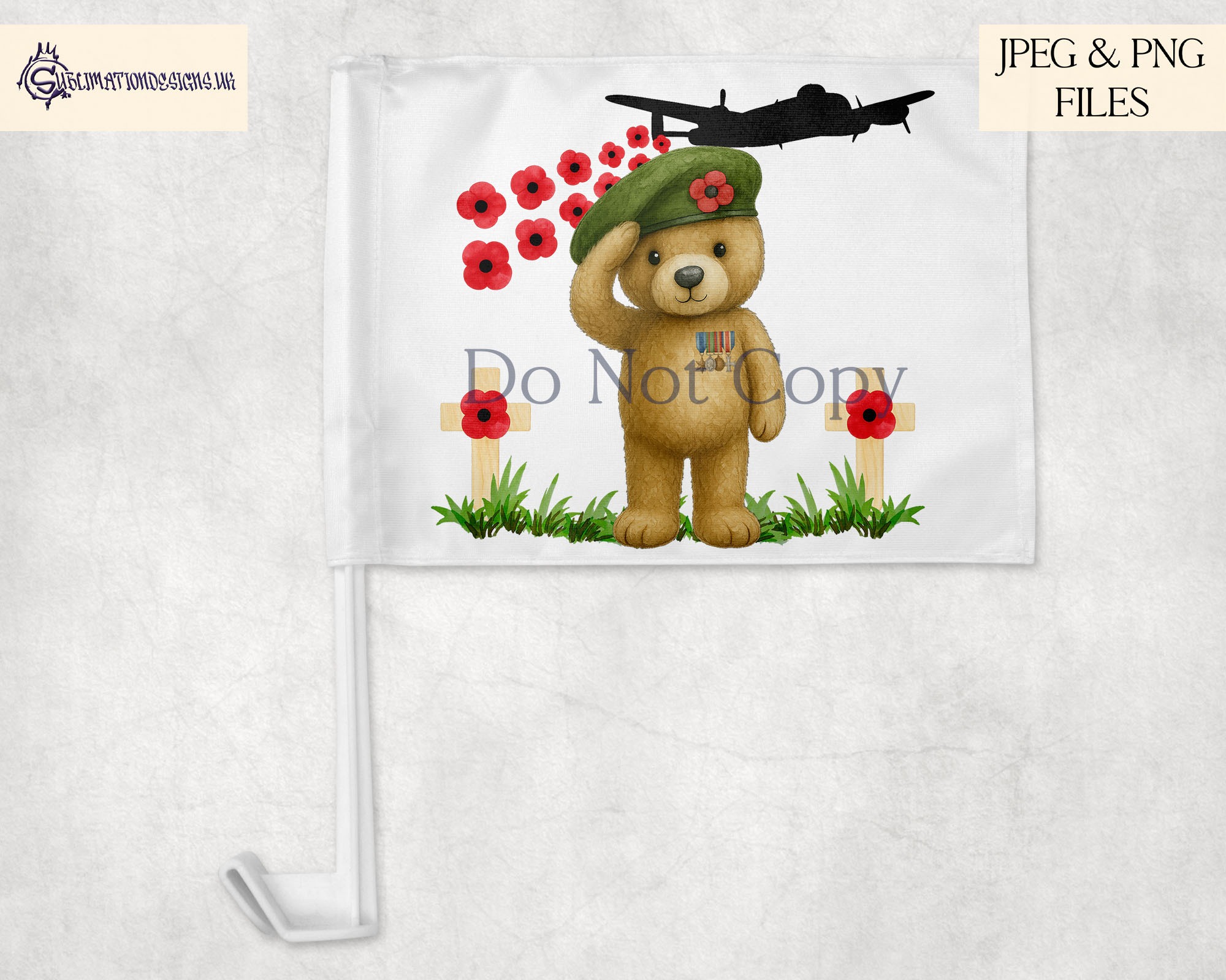 Saluting Teddy Bear Remembrance Day Designs Set | 5 Variations | JPEG & PNG | 3 Mock-Ups | Commercial Licence