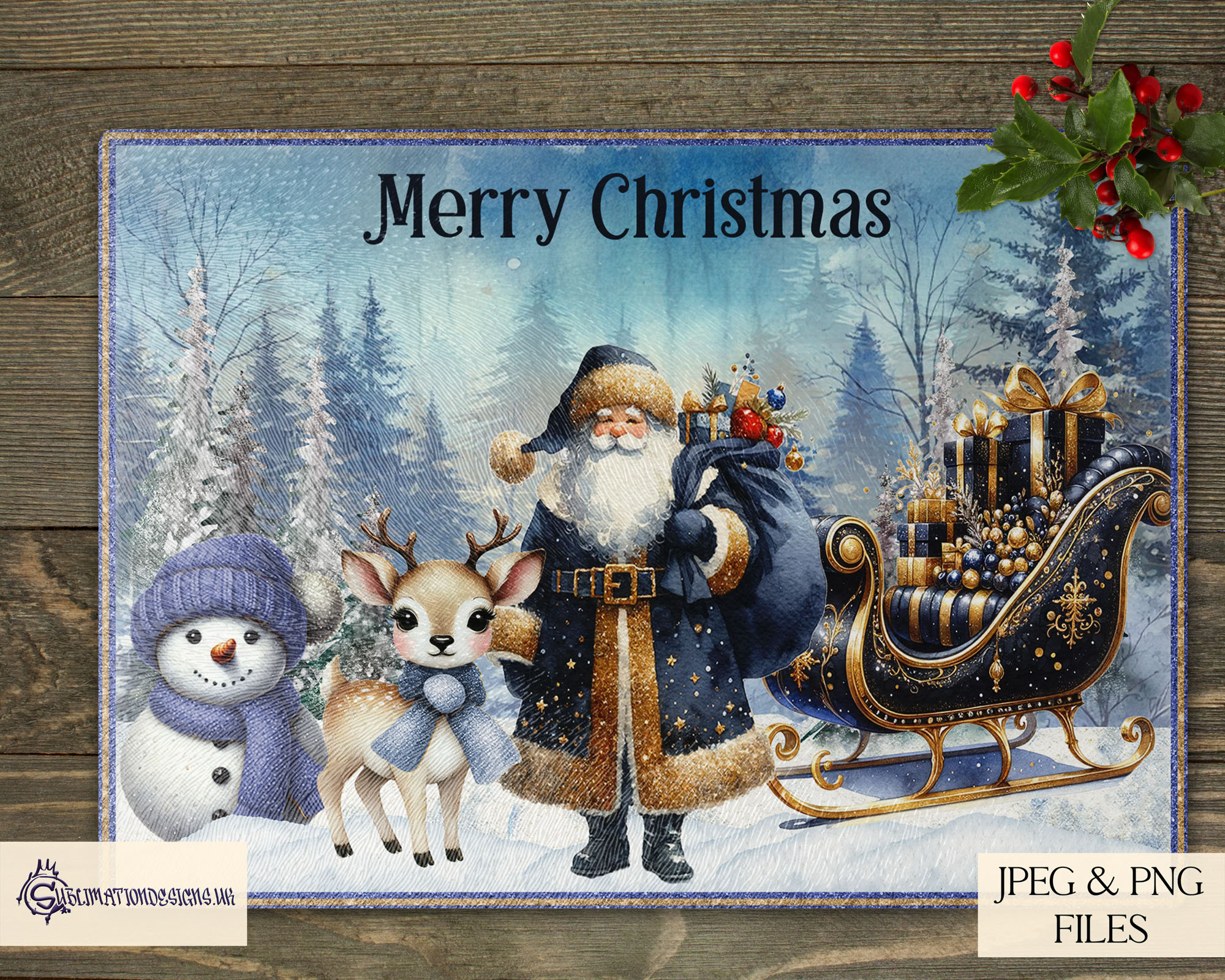 Santa and Friends Landscape Design Navy Blue and Gold Edition | JPEG and PNG | 3 Mock Ups | Commercial Licence