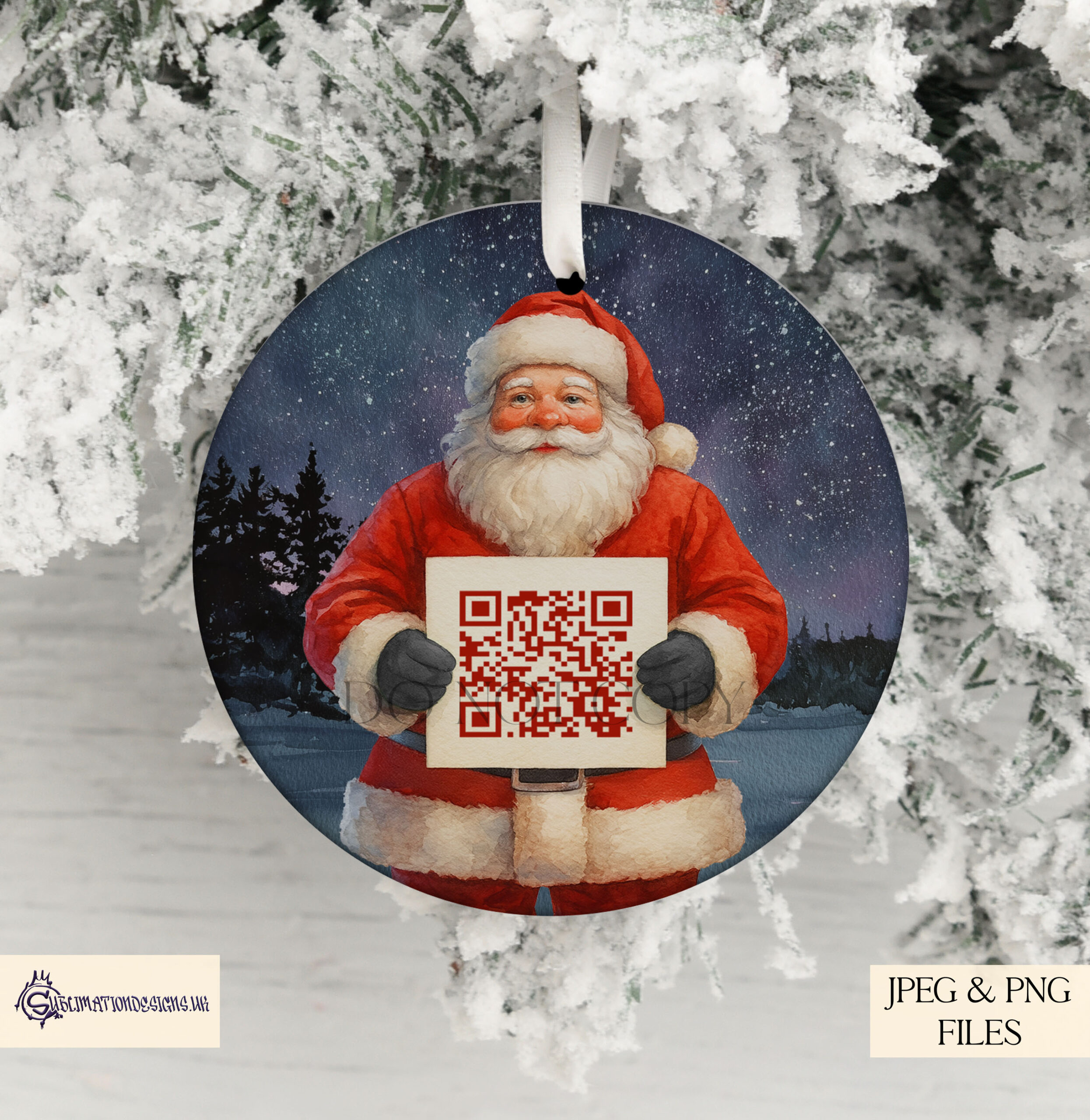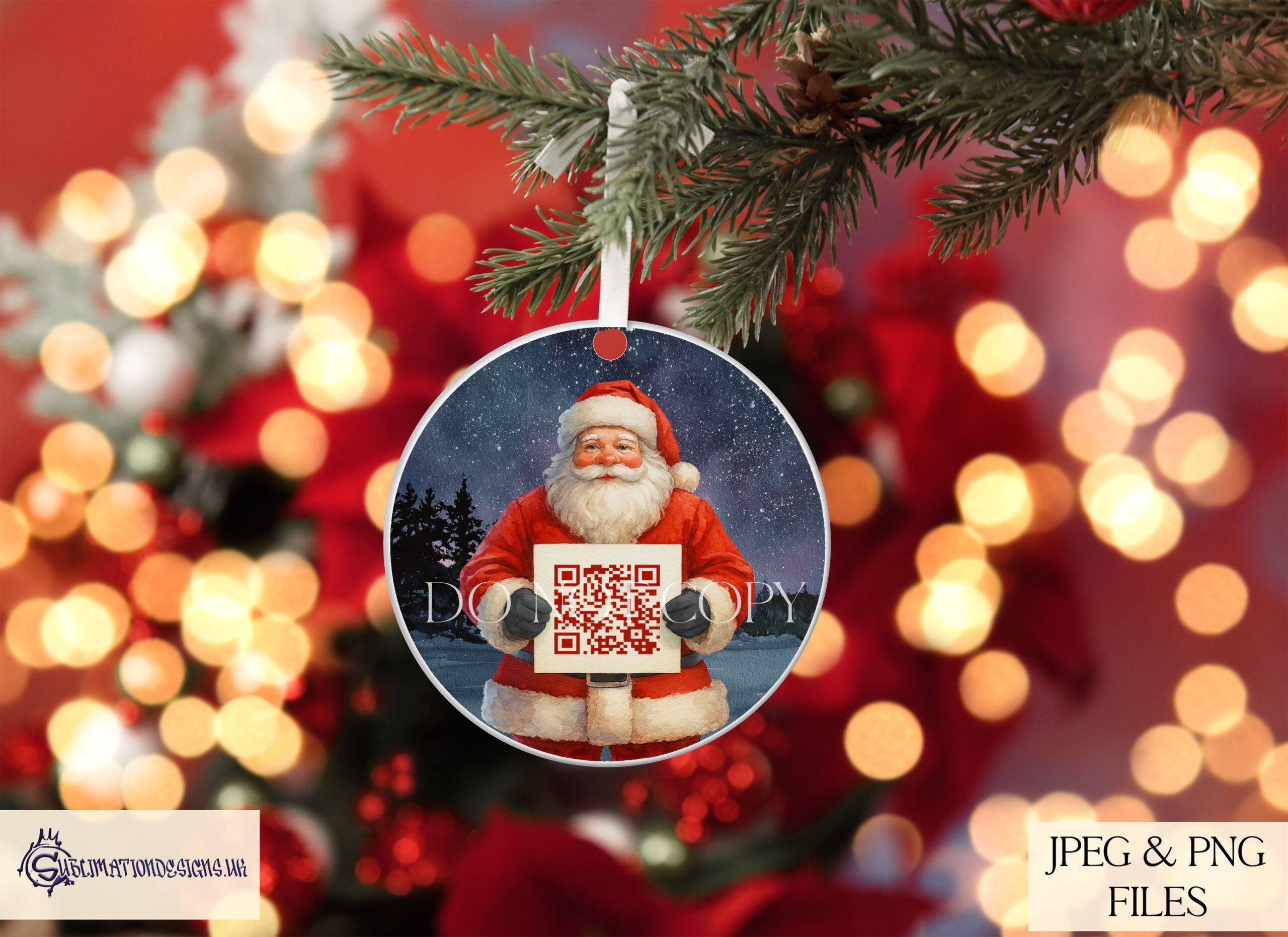 The Santa Holding a NORAD Tracker Code Bauble Set of 2 gives you a playful Christmas idea that children love. The artwork shows Santa holding a sign with a QR code that links to the official NORAD Santa Tracker. This allows children to scan the design and track Santa on Christmas Eve. The concept adds excitement and creates a unique keepsake for families.