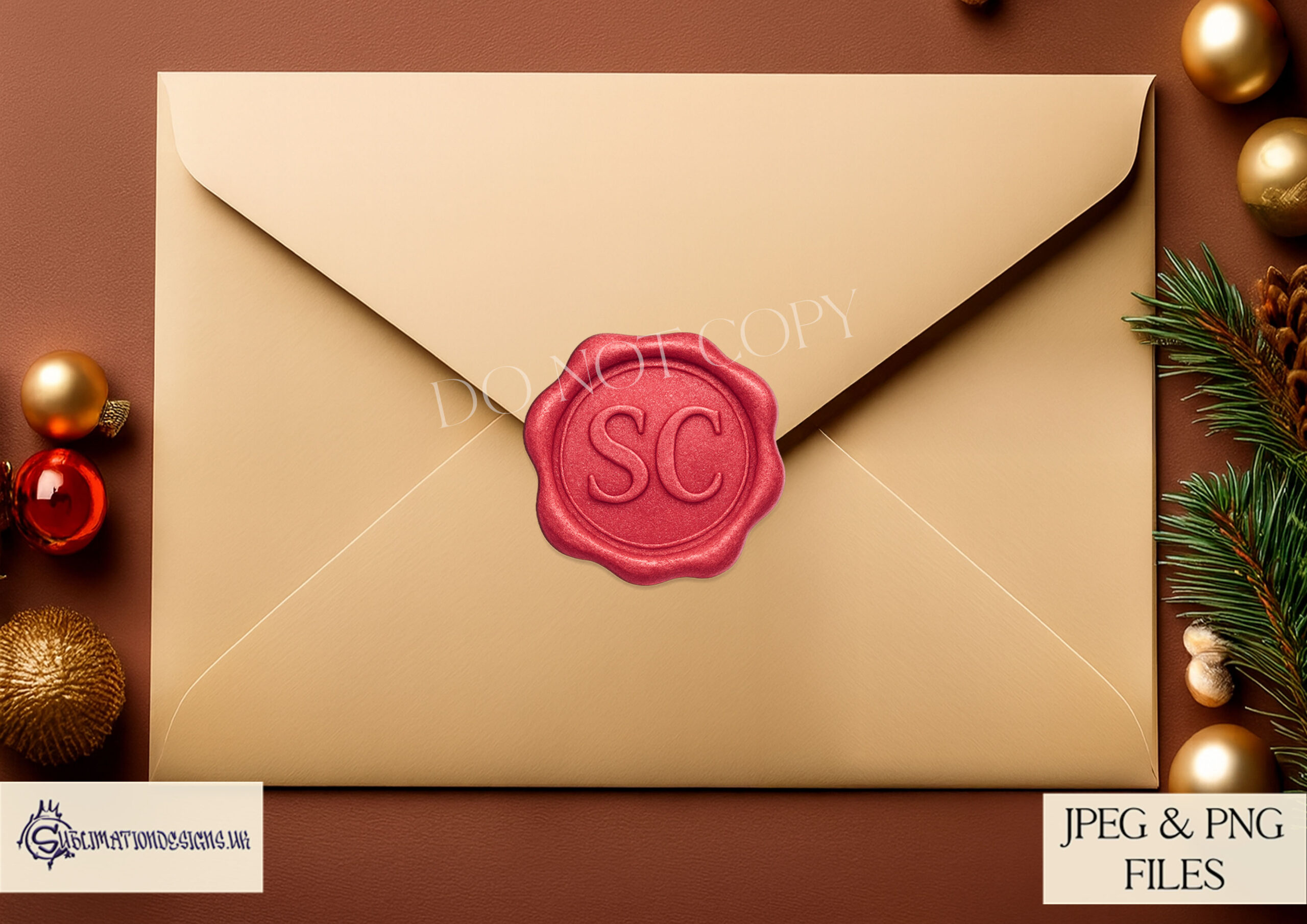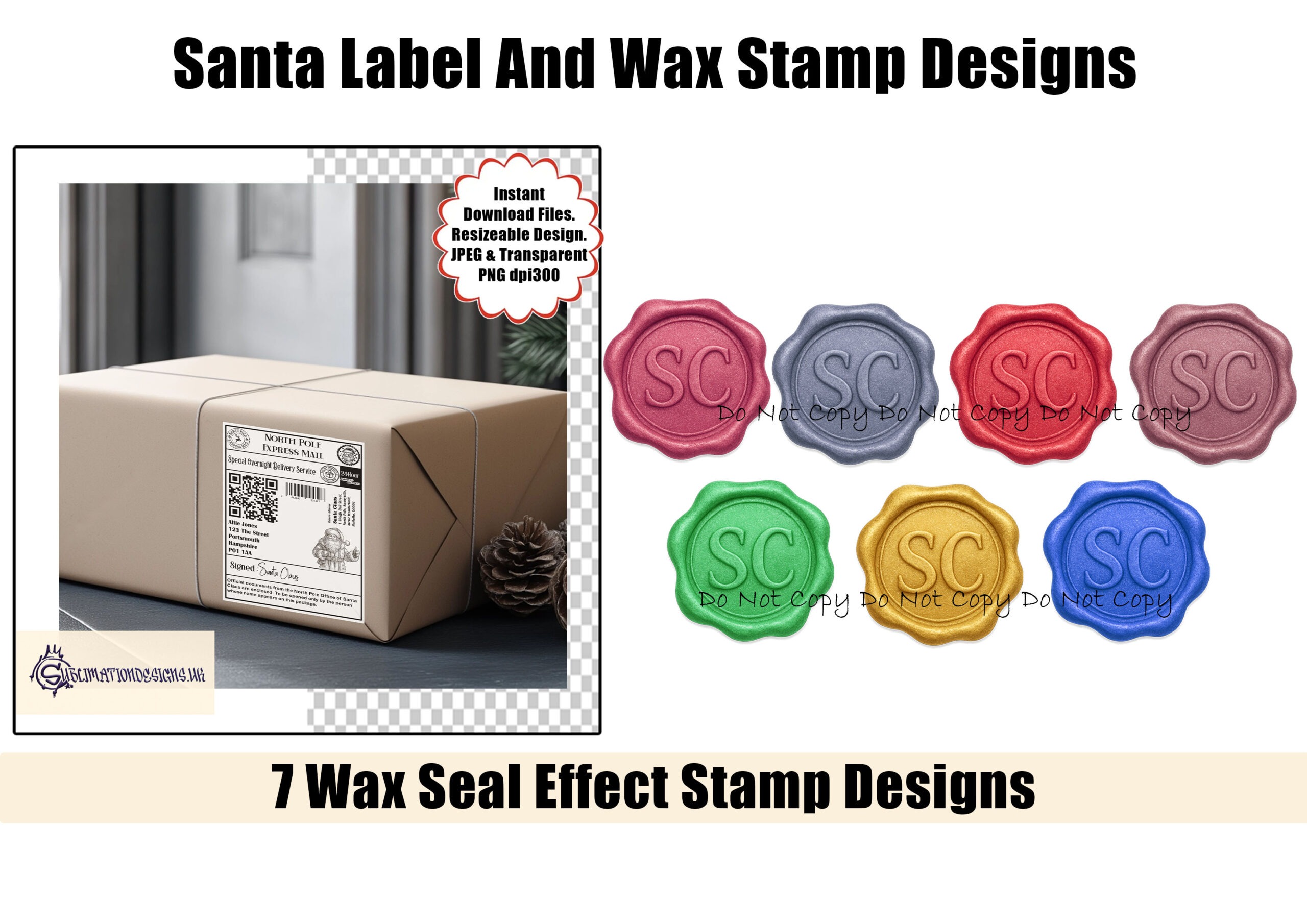 Santa Post Label and Wax Seal Designs Set | 1 Delivery Label and 7 Wax Seal Variations | JPEG & PNG | 2 Mock-Ups | Commercial Licence