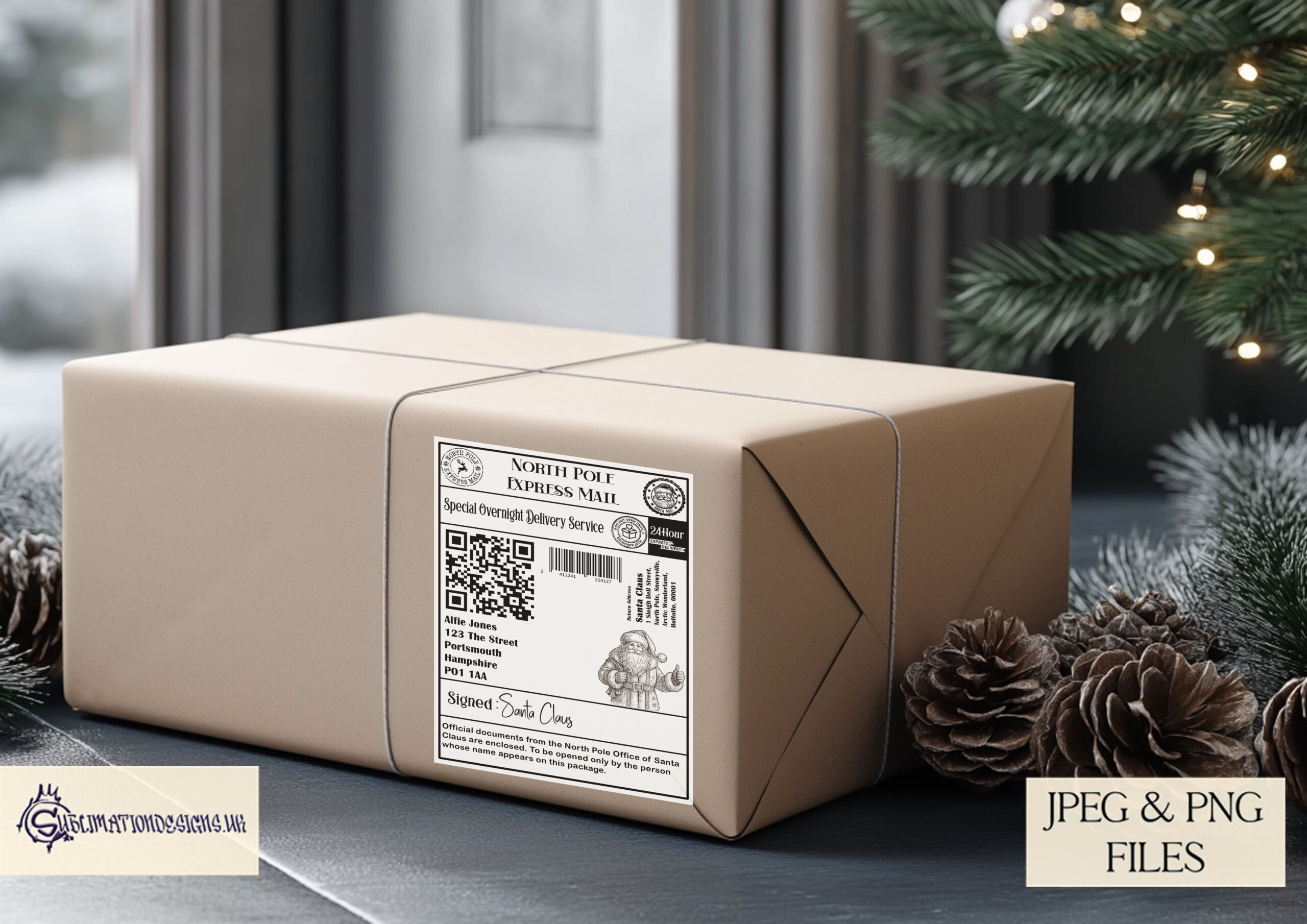1 Santa delivery post label design (JPEG & PNG, 300 DPI)