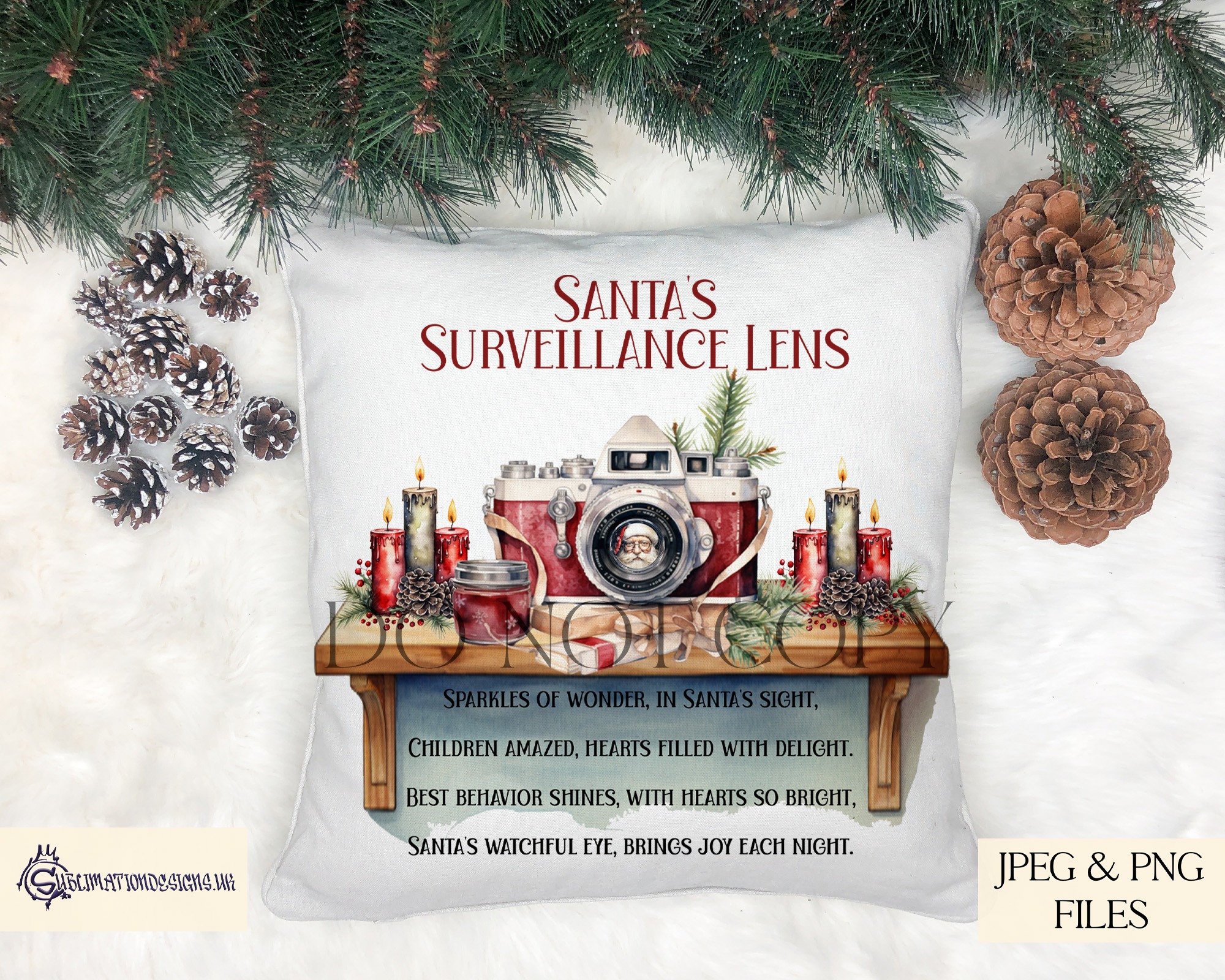 Santa’s Surveillance Camera Designs Set | With and Without Wording Options | JPEG & PNG | 3 Mock-Ups | Commercial Licence