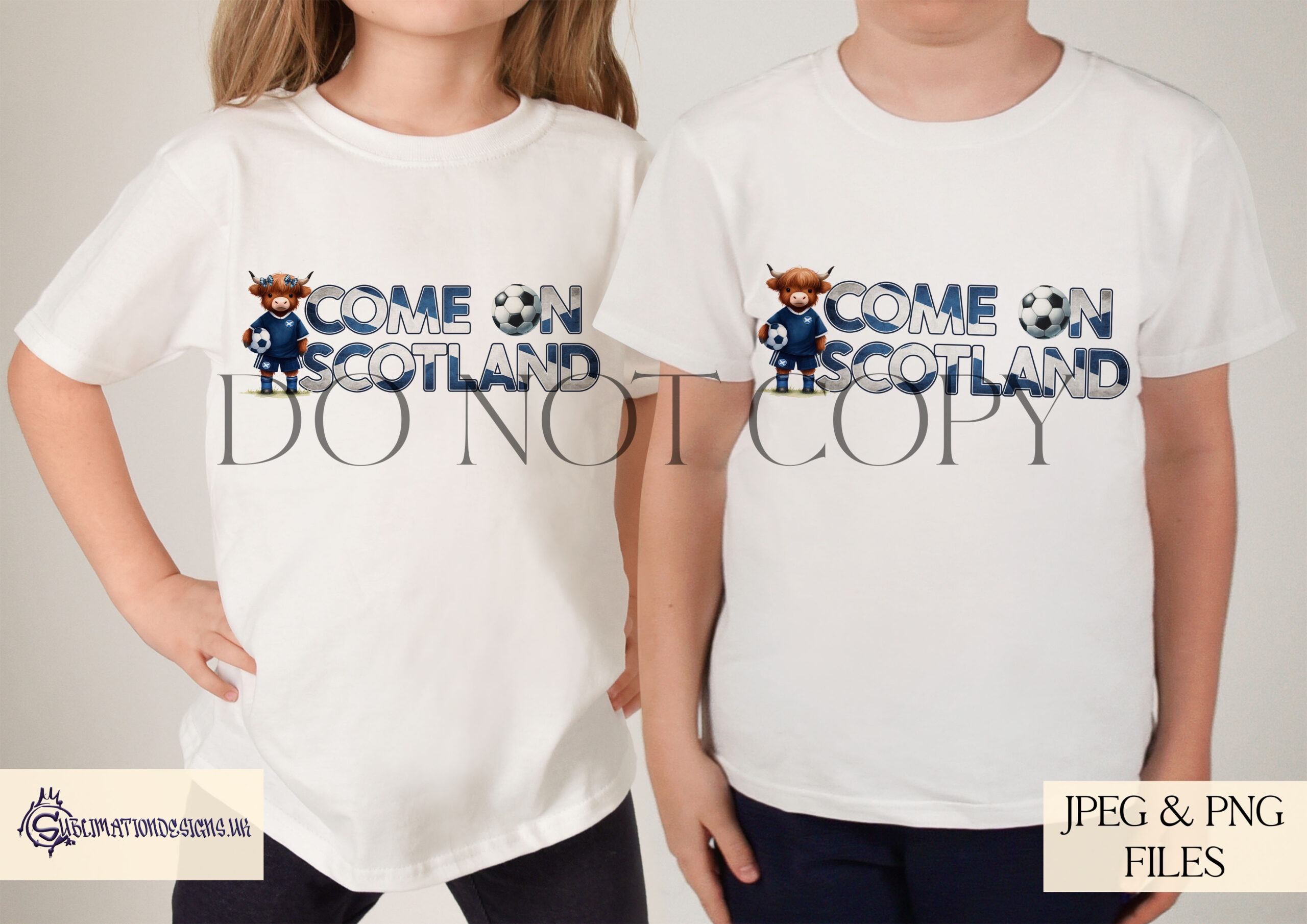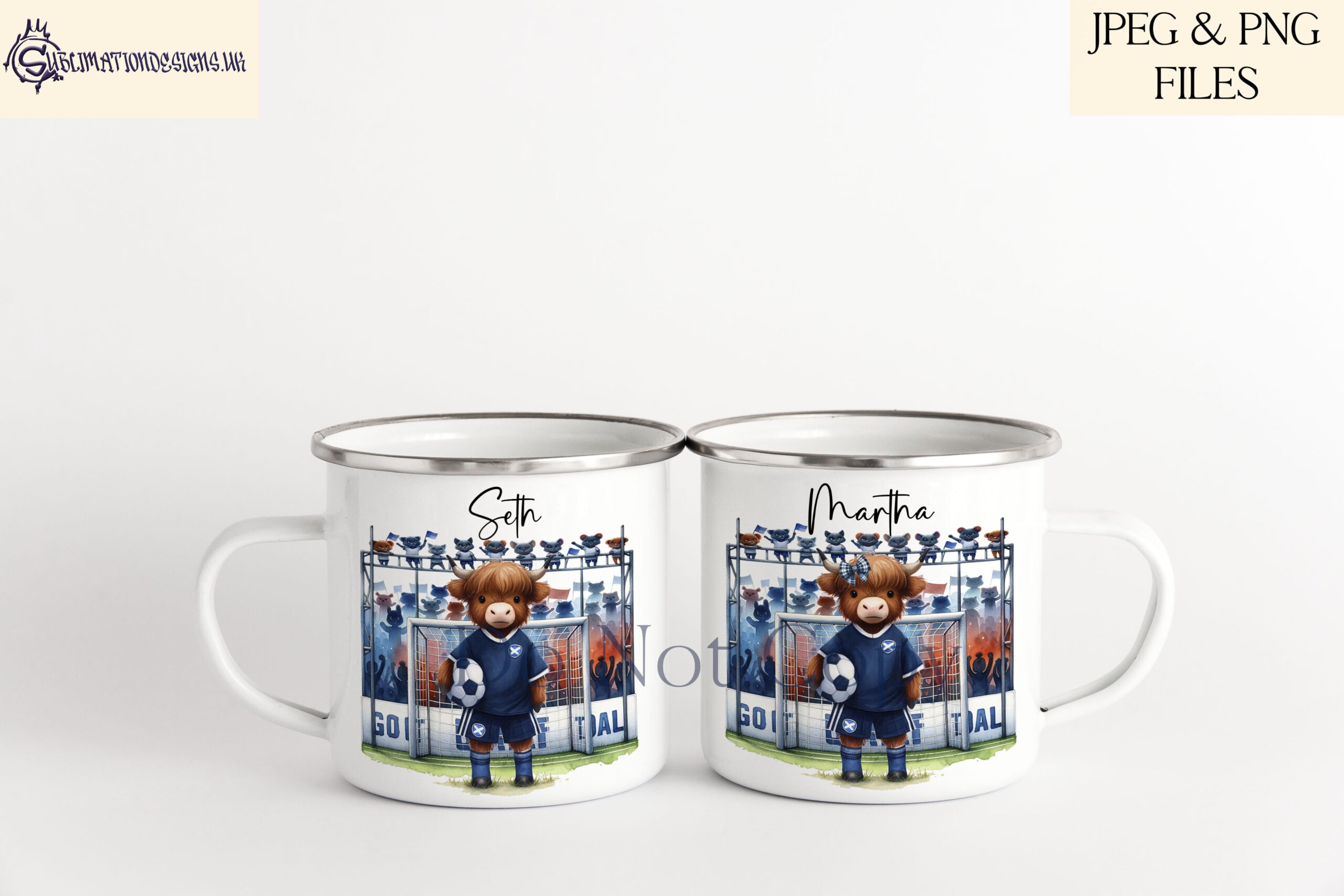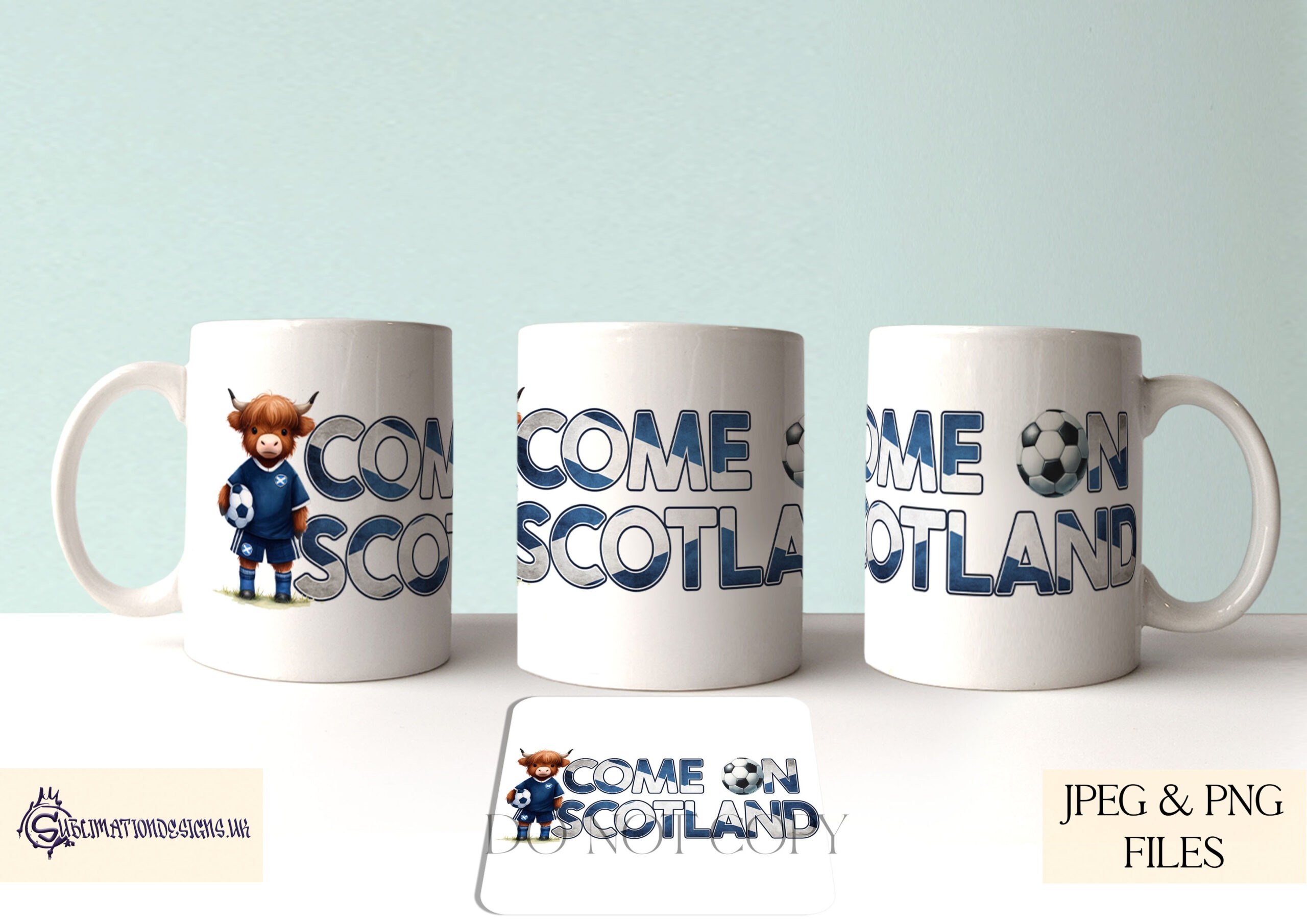 The bundle includes eight high quality designs. You receive four boy variations and four girl variations. The set includes two textless designs, two designs with a goal background and four Come On Scotland versions. All files are supplied in JPEG and PNG at 300 DPI, and they resize cleanly across a range of blanks. These designs work well on mugs, apparel, drinks bottles and plaques. They also suit cushions, tins and many other football themed items. To help you present your finished work, the set includes five mock ups.