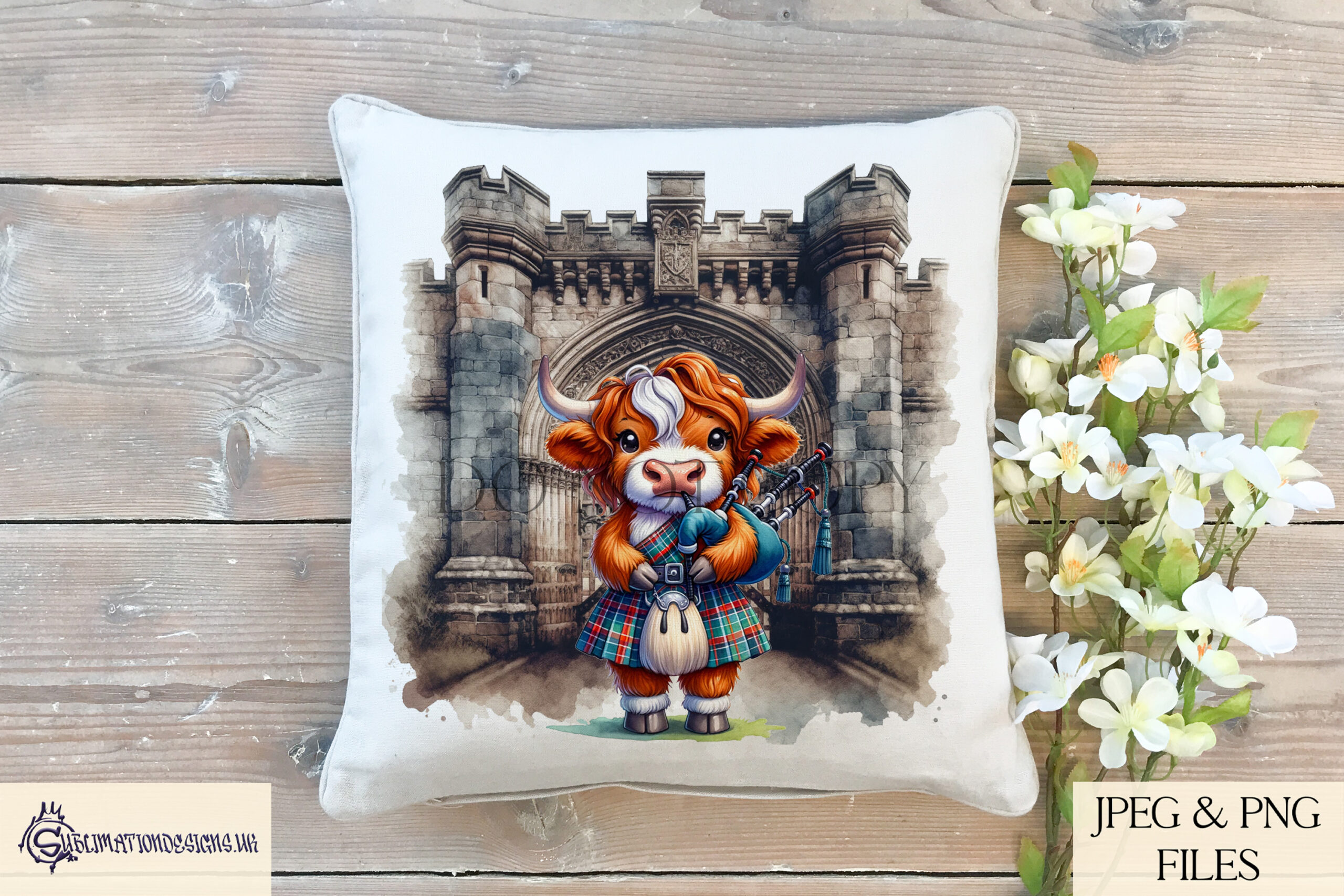 Celebrate the charm of Scotland with our Highland Melodies collection, a whimsical blend of tradition and artistry. This set features five unique designs, including four adorable Highland cows skilfully playing the Great Highland Bagpipe and a majestic Scottish castle design. Perfect for showcasing Scottish heritage, these designs add a playful yet classic touch to your projects.