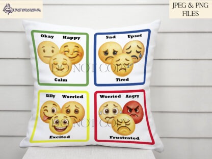 Also included is a completed ‘Four Zones’ design, perfect for cushions or posters, categorising emotions into red, yellow, green, and blue zones for easier understanding and management.