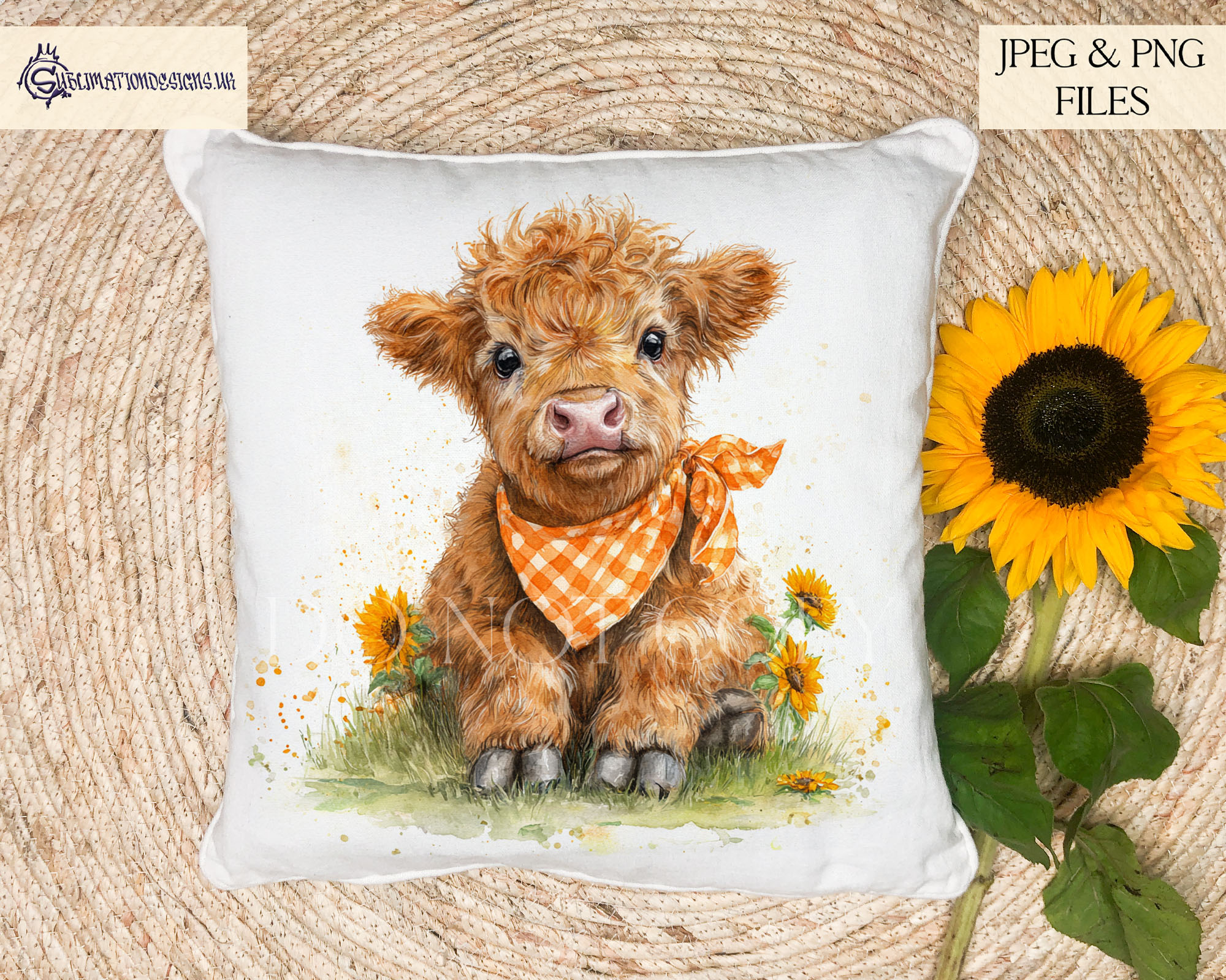 Spring Highland Cows In Neckerchiefs Set of 12 | 12 Textless Designs | JPEG and PNG | 6 Mock Ups | Commercial Licence