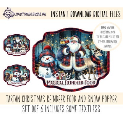 Tartan Themed Christmas Popper Label Designs Set – 6 Designs for Reindeer Food & Snow Poppers