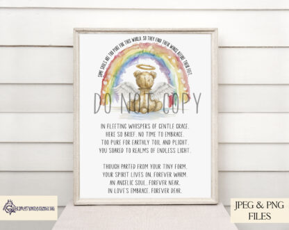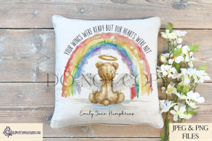 - Exclusive Design: A teddy bear angel beneath a rainbow, symbolising infant loss awareness.