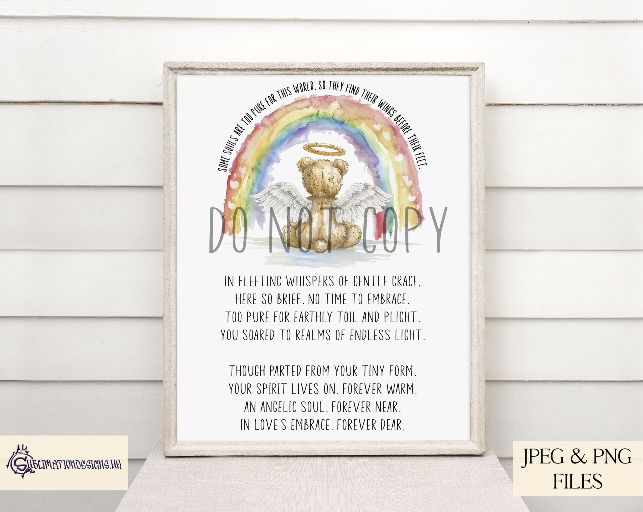 Our Teddy Bear Rainbow Infant Loss Awareness Design Set, a cherished best-seller, is now available on our website with a special introductory offer for the first 48 hours. This heartfelt collection features a tender teddy bear angel beneath a celestial rainbow, designed to honour and remember little ones gone too soon. With poignant wording options and textless designs, this set is ideal for creating meaningful memorial items.