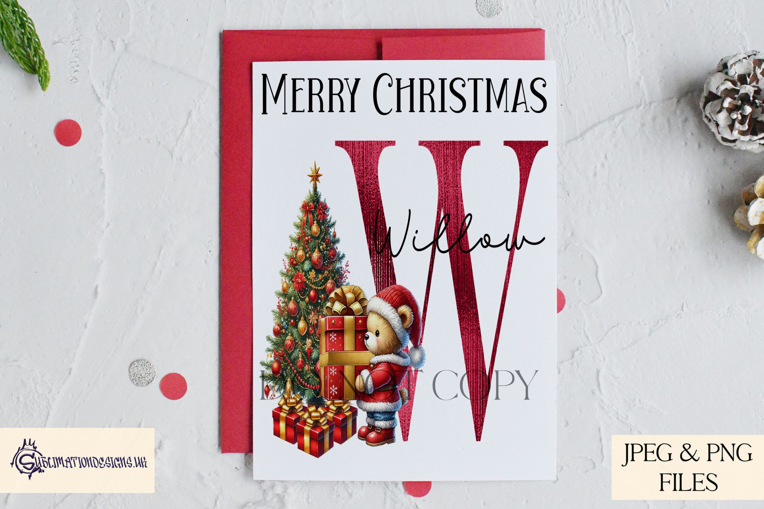 sublimation design, Christmas alphabet set, teddy bear Christmas designs, personalized Christmas gifts, digital download, red foil alphabet, festive letter designs