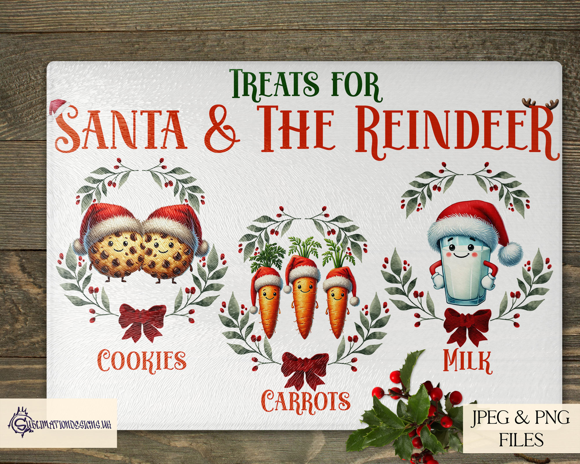 Treats for Santa and His Reindeer Designs Set – 2 Designs in A4 for Chopping Boards & Sublimation Mats