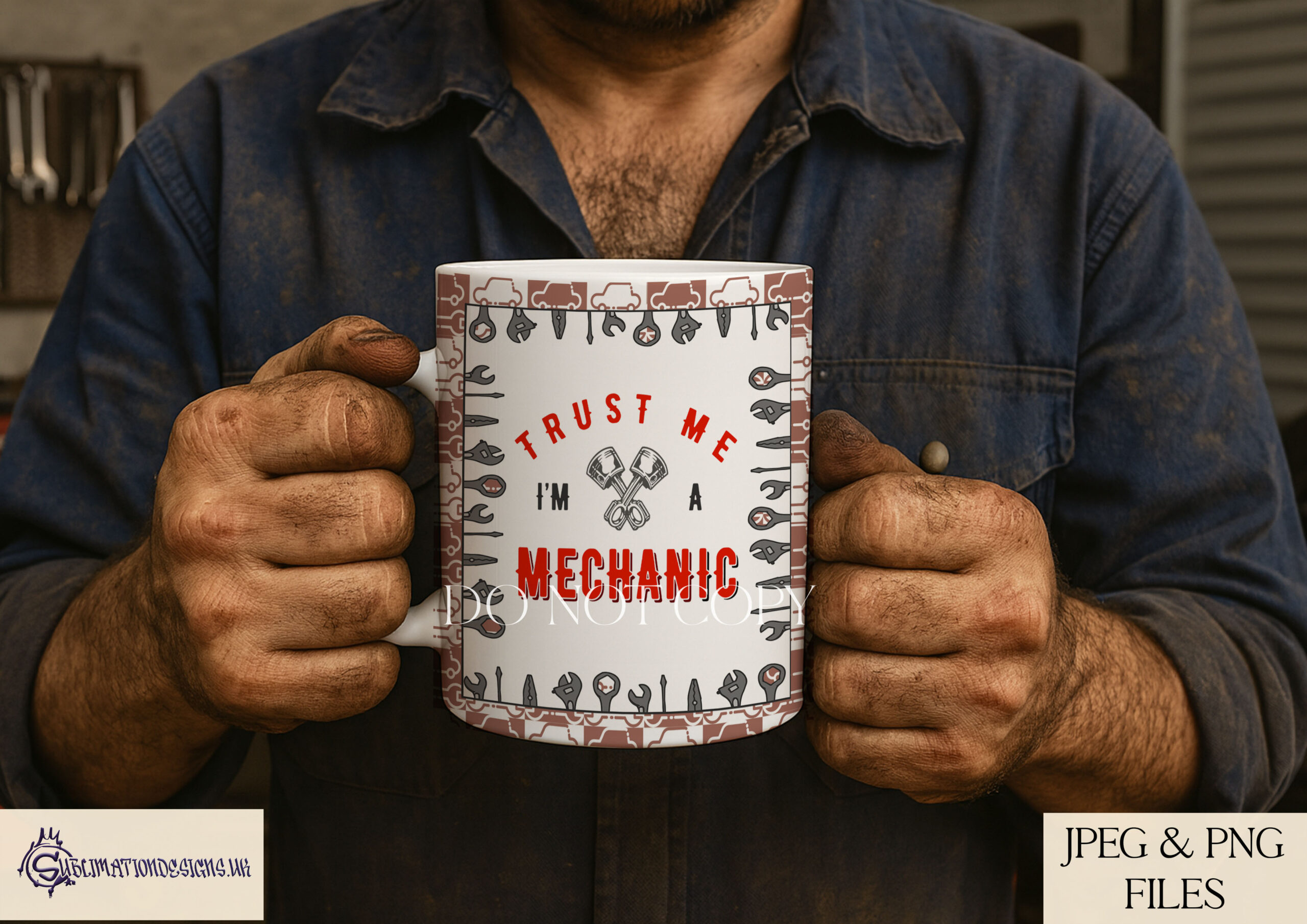 Trust Me I’m A Mechanic Design Set | 7 Digital Files for Mugs and Coasters | JPEG & PNG | 3 Mock-Ups | Commercial Licence