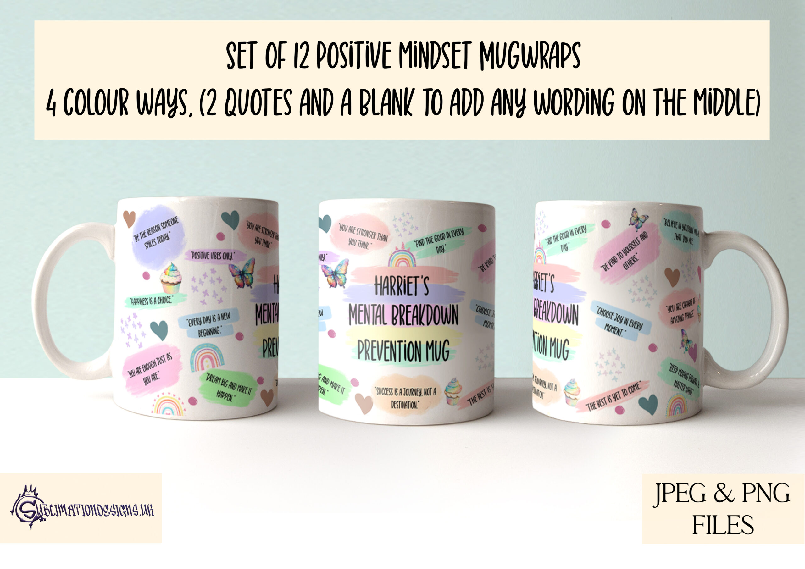 - 12 Mug Wraps – Uplifting quotes designed for 11oz mugs