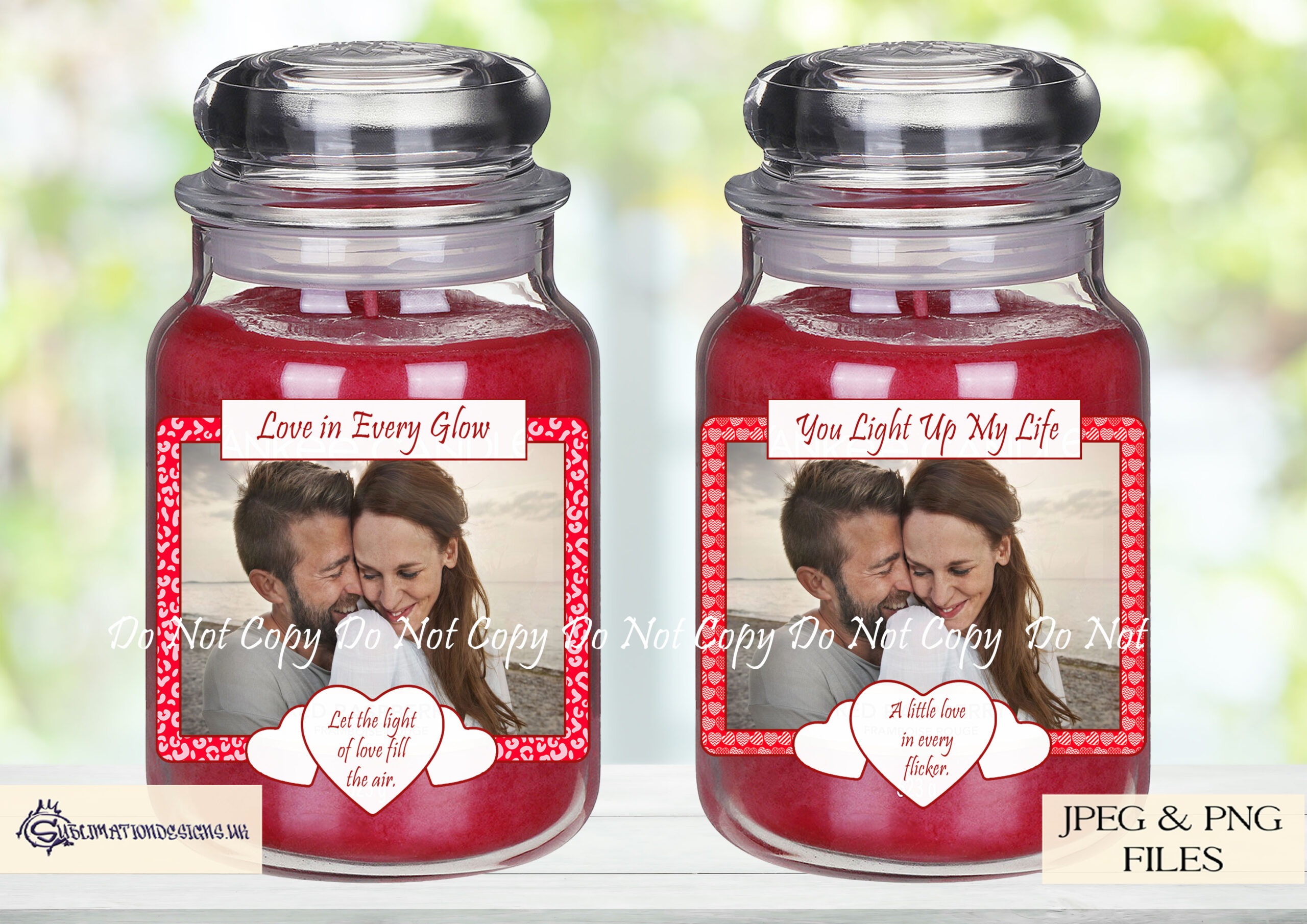 Valentine & Love Candle Label Designs Set – 6 Frames, 1 bonus image, and 10 wording PNG’s