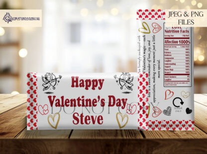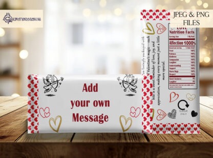 Add a sweet touch to your gifts with our Valentine’s Day Chocolate Bar Wrapper Design Set. This set includes 6 versatile designs in 2 colour schemes, offering three different wording options: “Happy Valentine’s Day,” “Will You Be My Valentine?” and a textless version that allows you to add your own image or message. These wrappers are perfect for personalising chocolate bars for romantic gifts or crafting projects.