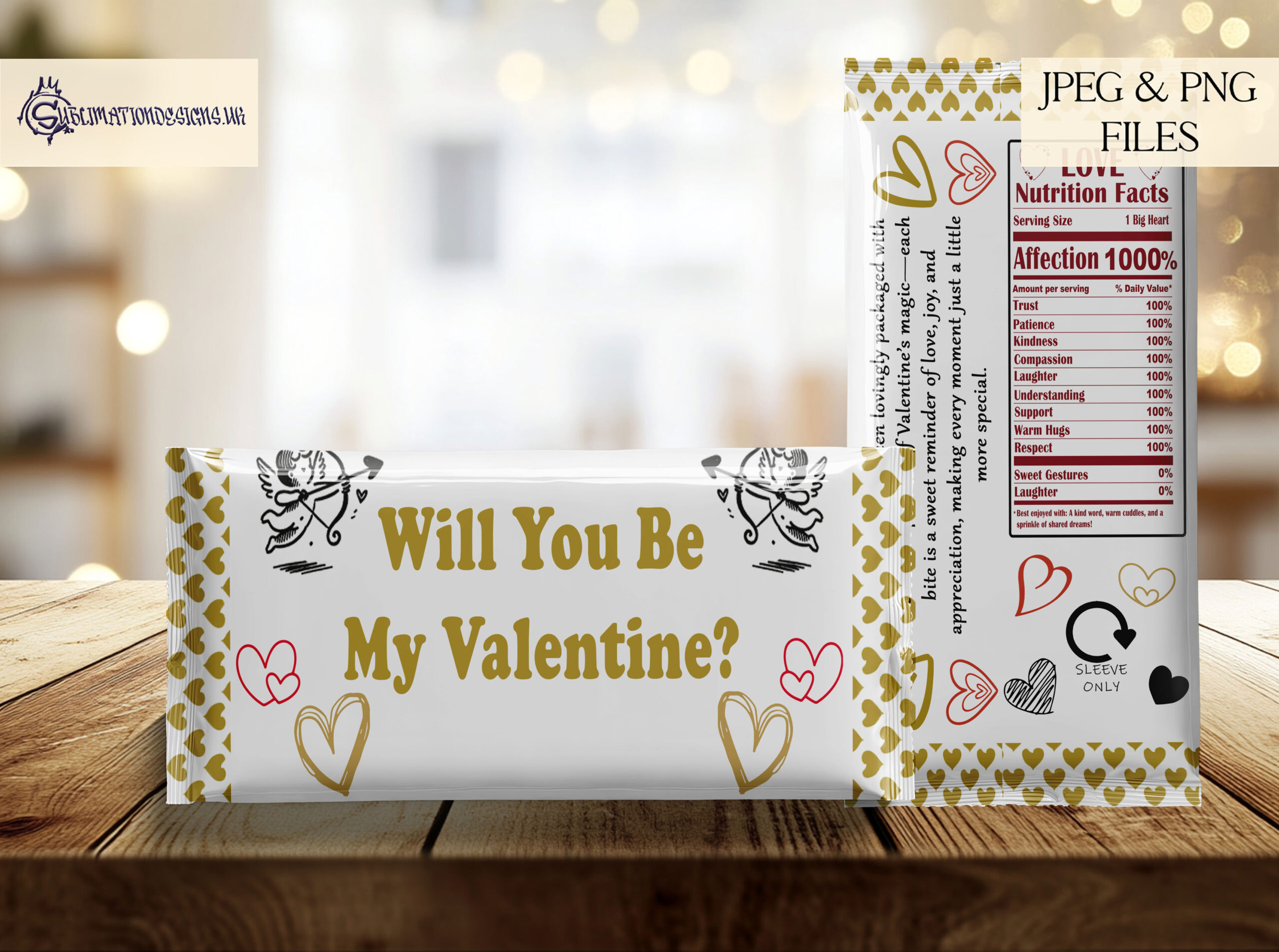 Valentine’s Day Chocolate Bar Wrapper Design Set – 6 Designs