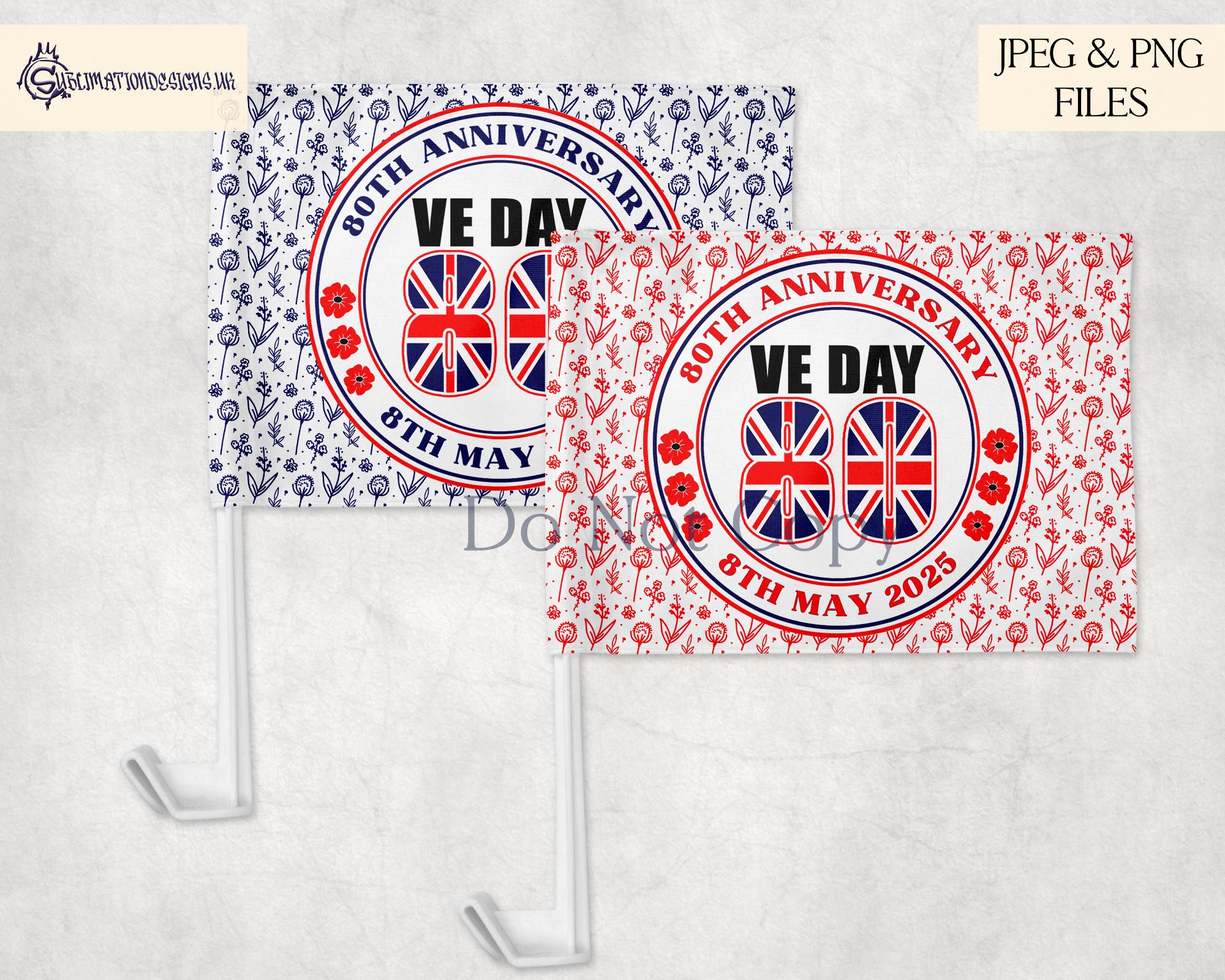 Featuring plain red, plain blue, blue and red, and red and blue variations, each design comes with both our Red and Blue VE Day 80 emblem options. These high-resolution designs are ideal for sublimation printing, allowing you to create commemorative products for collectors, events, and patriotic gifts.