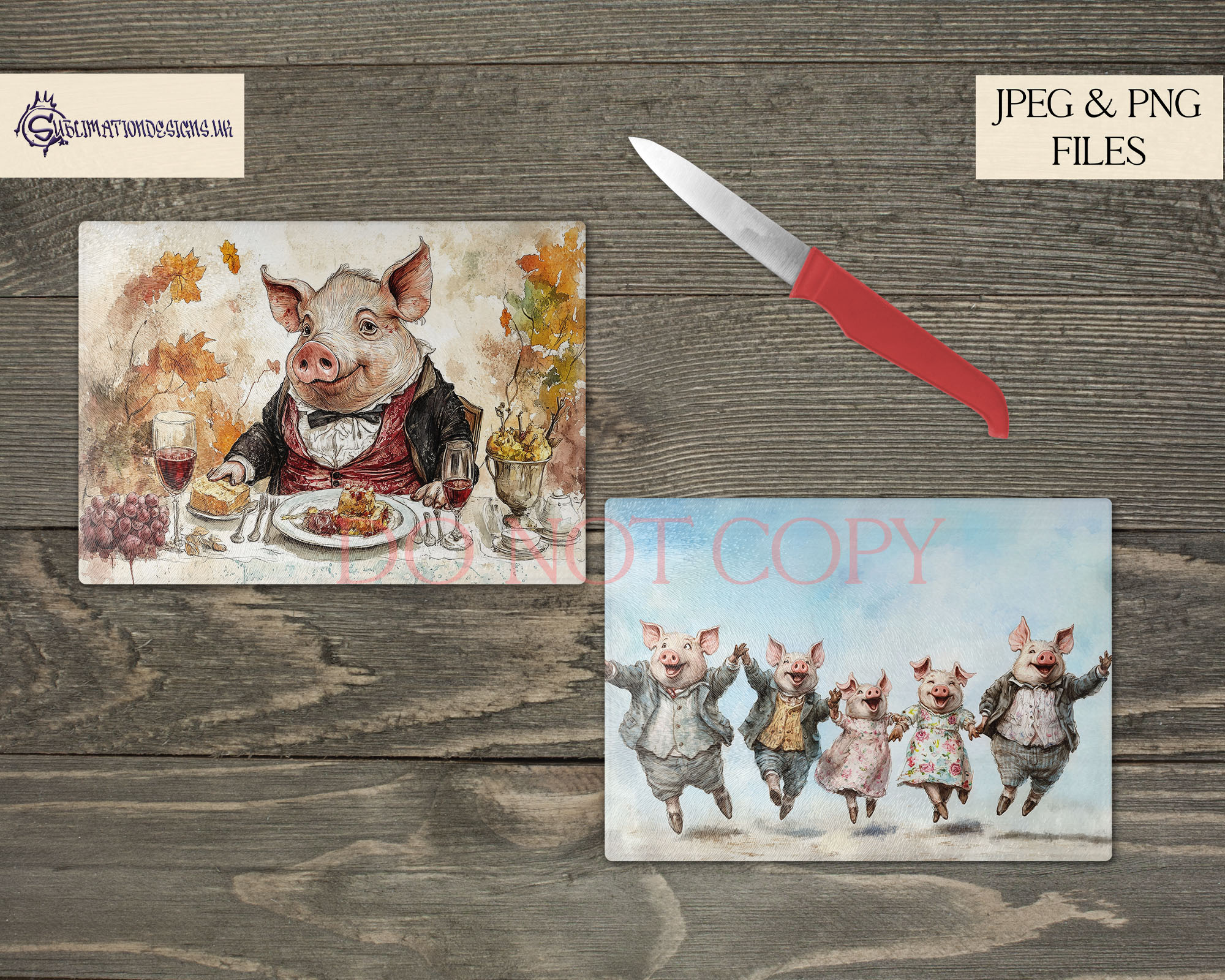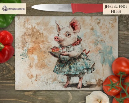 The Vintage Pig-Themed Chopping Board Set – Set of 6 is an instant download, making it quick and easy to create delightful and quirky products with vintage charm.