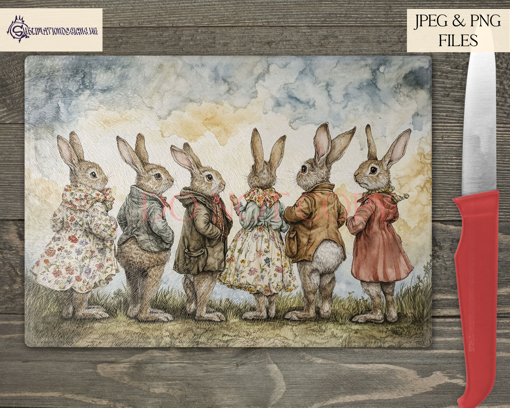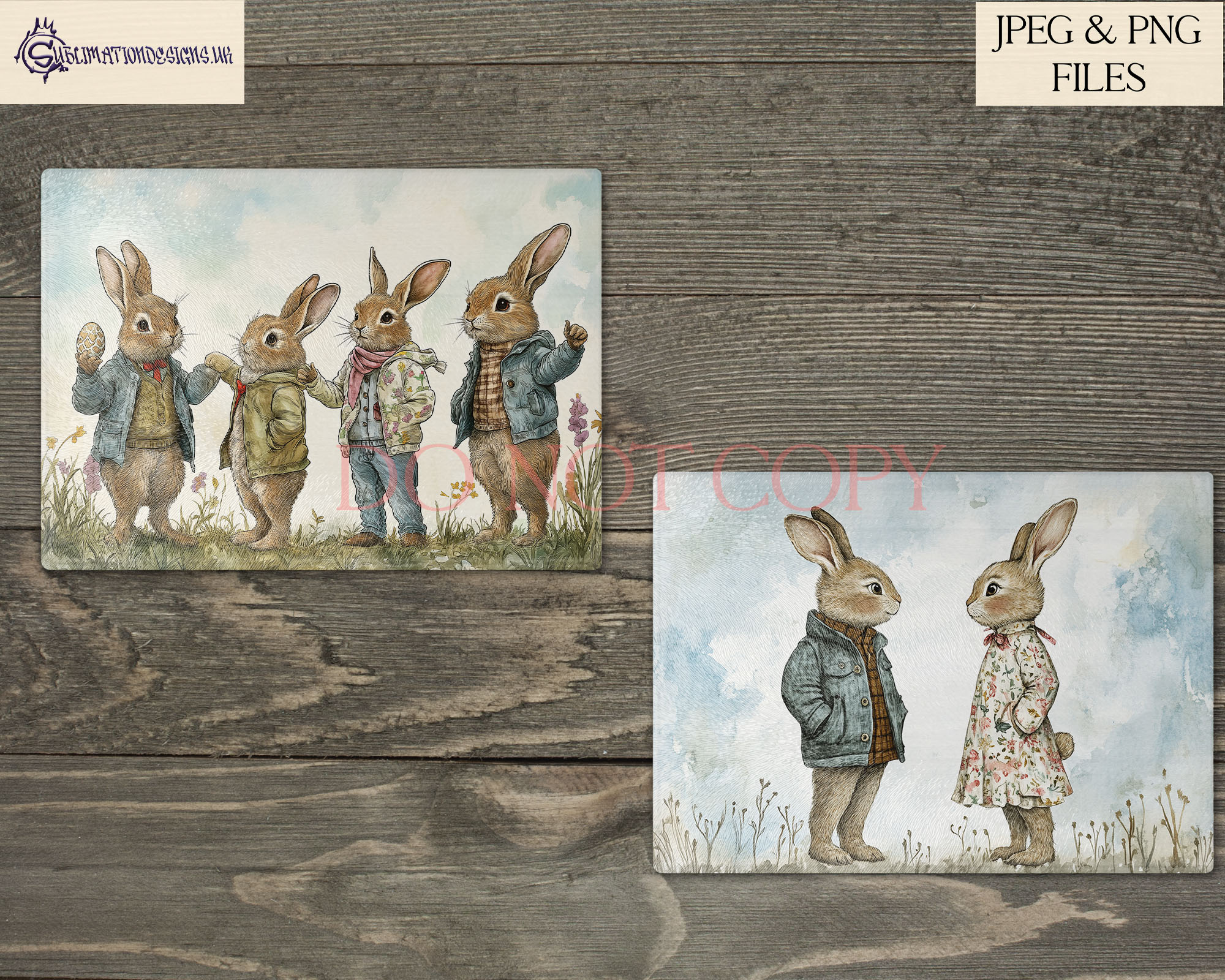 Vintage Rabbit Designs Set – Landscape and perfect for chopping boards and more