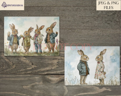 The Vintage Rabbit Designs Set – Landscape is an instant download, making it quick and easy to create heart-warming and nostalgic gifts or products.