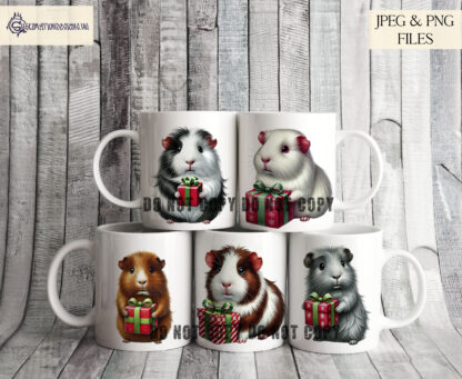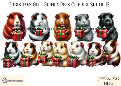 Water coloured Guinea Pigs with Christmas Gifts Clip Art Set – 12 Festive Designs