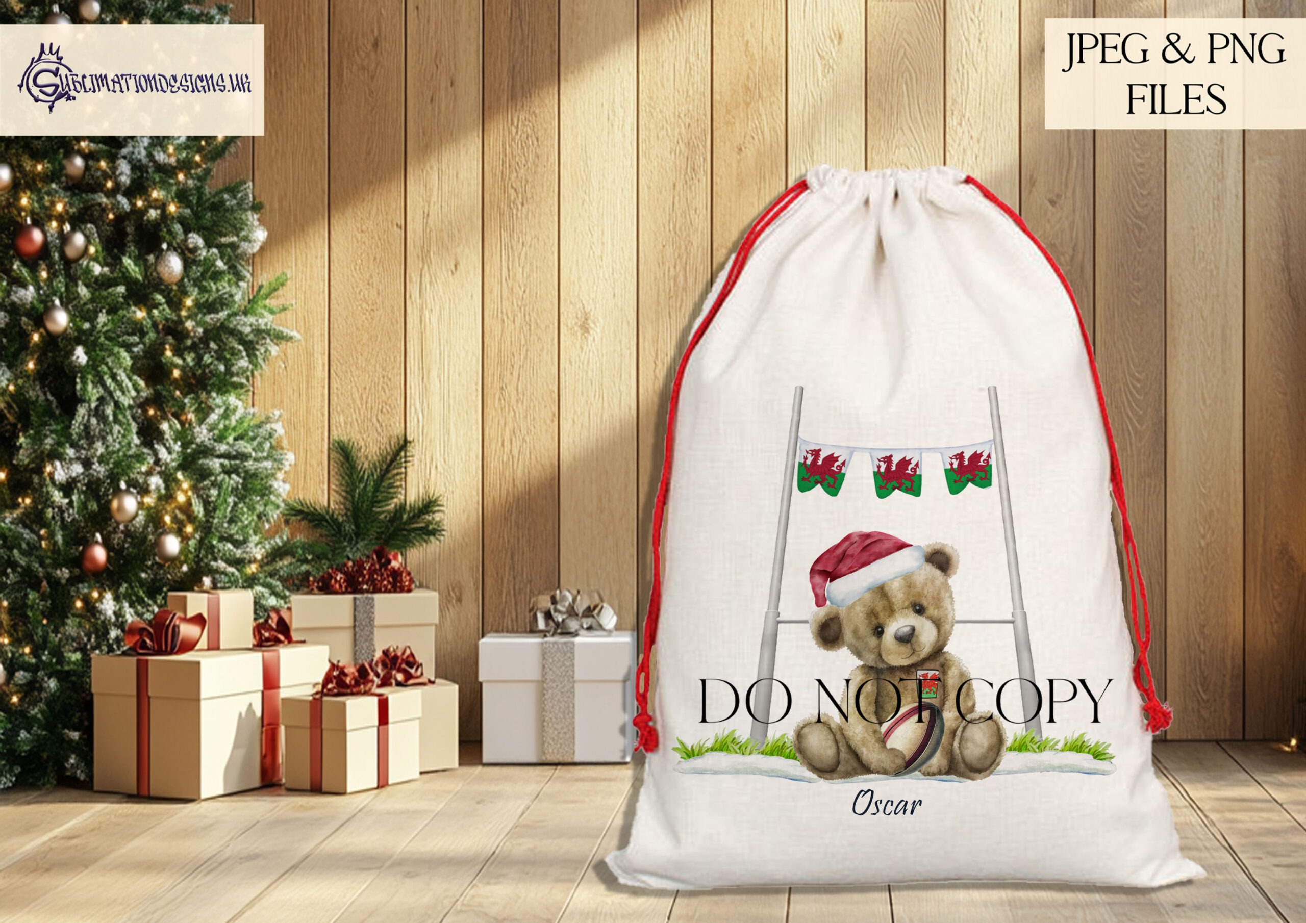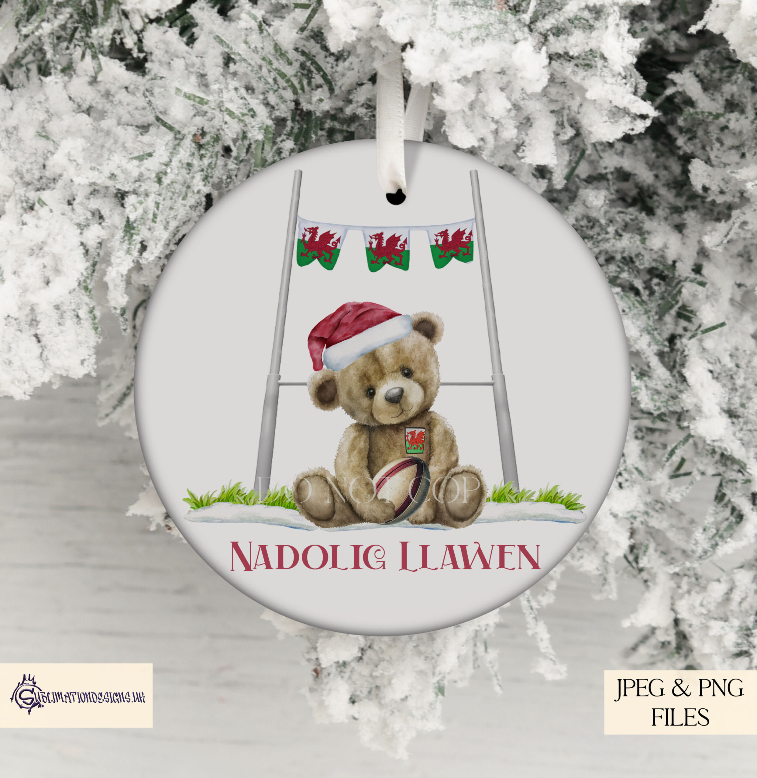 The set includes three variations – a textless design, one with “Merry Christmas” wording and one with “Nadolig Llawen”, perfect for creating personalised gifts and décor for Welsh rugby fans. Supplied in high-quality JPEG and PNG formats, each design is ideal for sublimation, print or crafting projects.