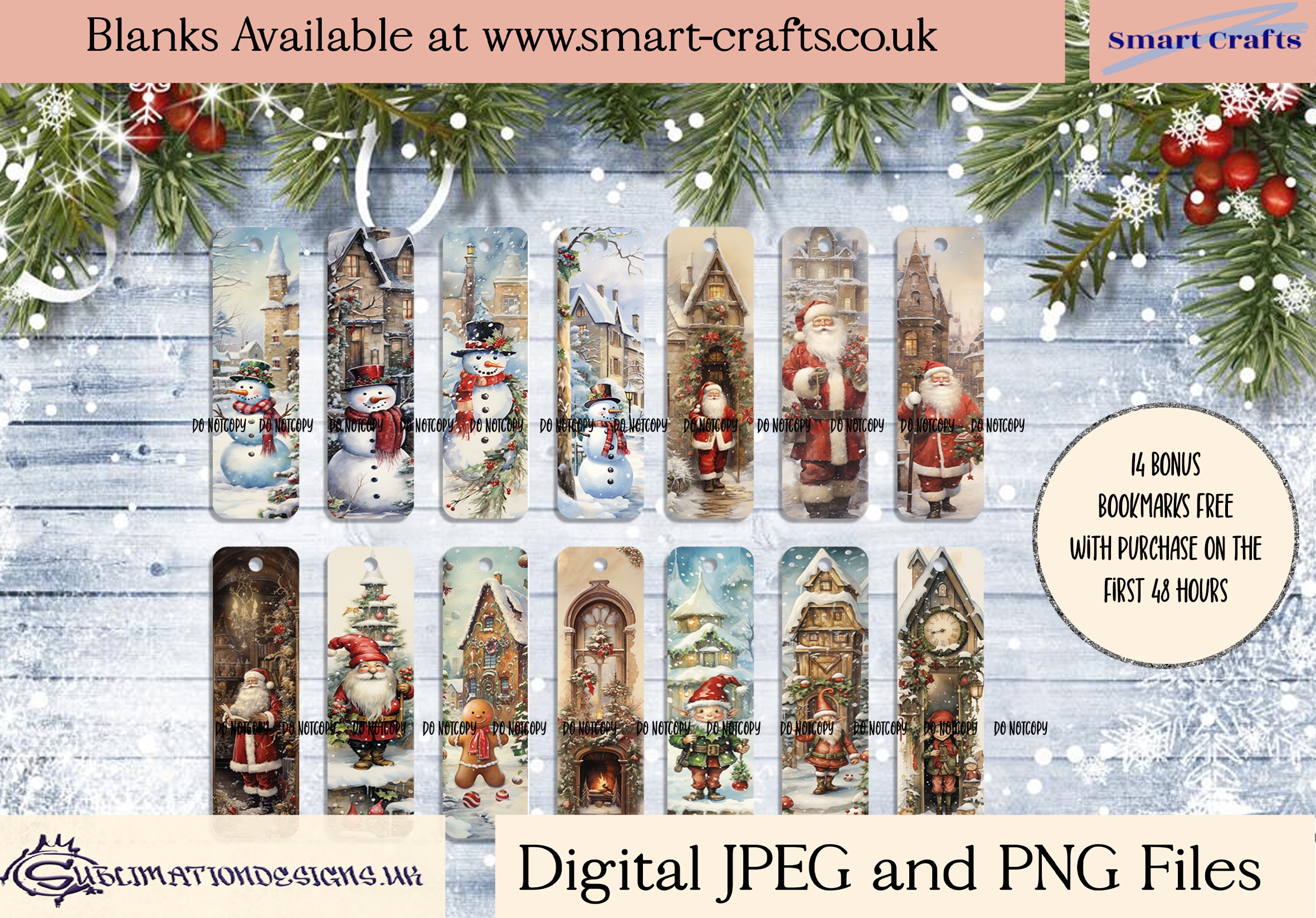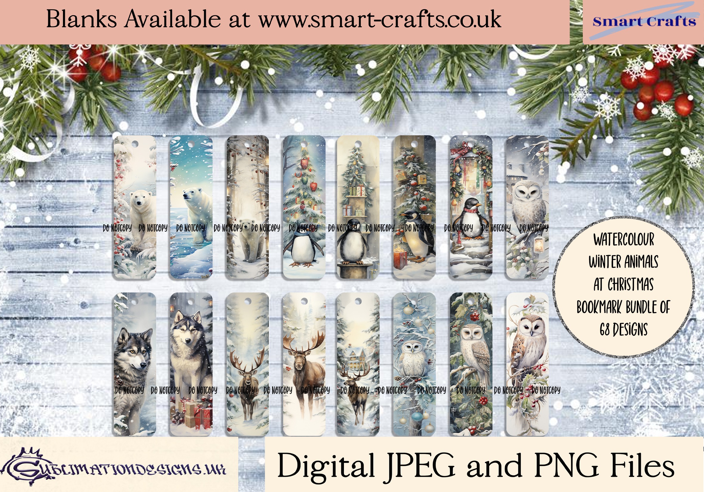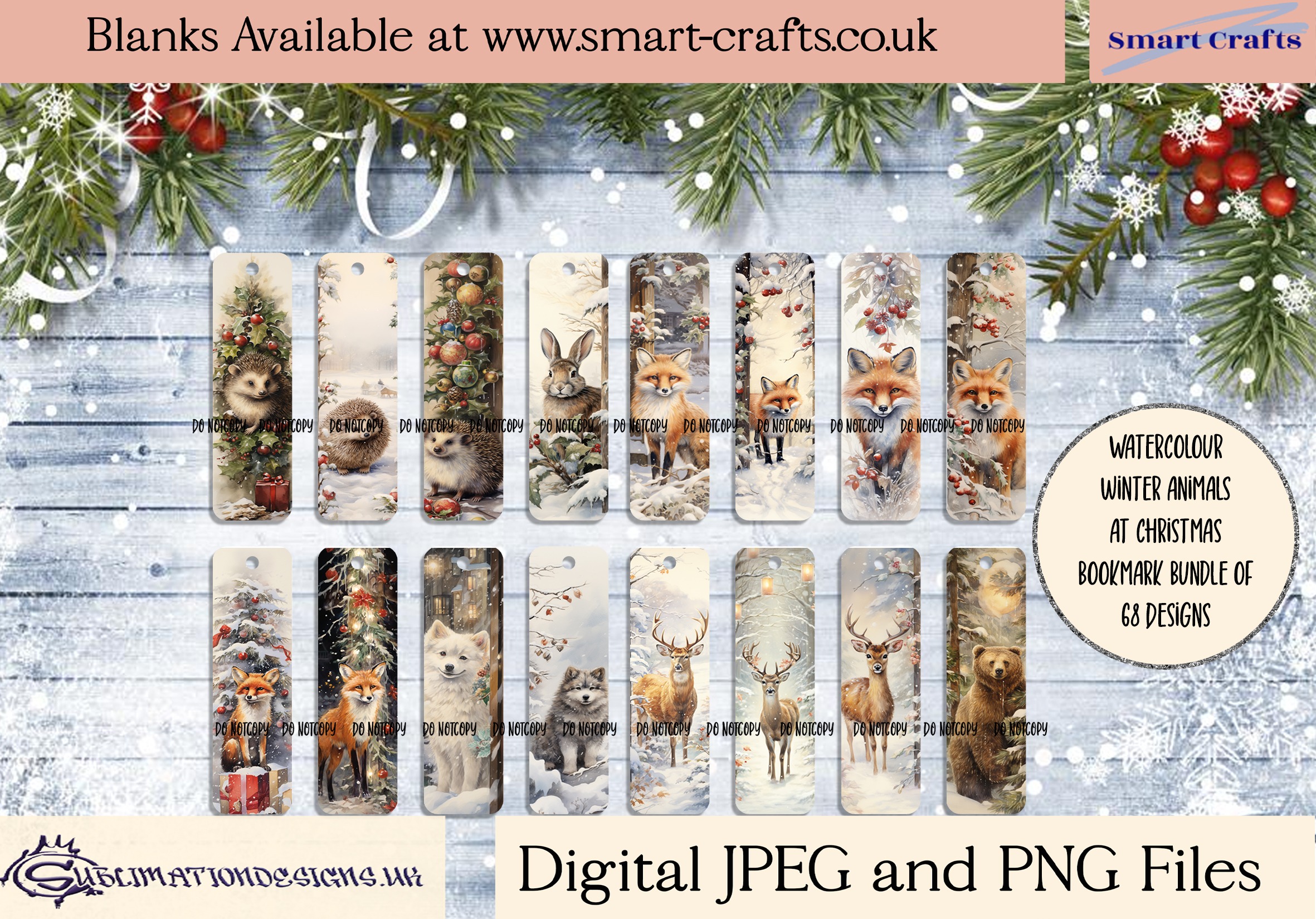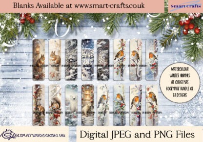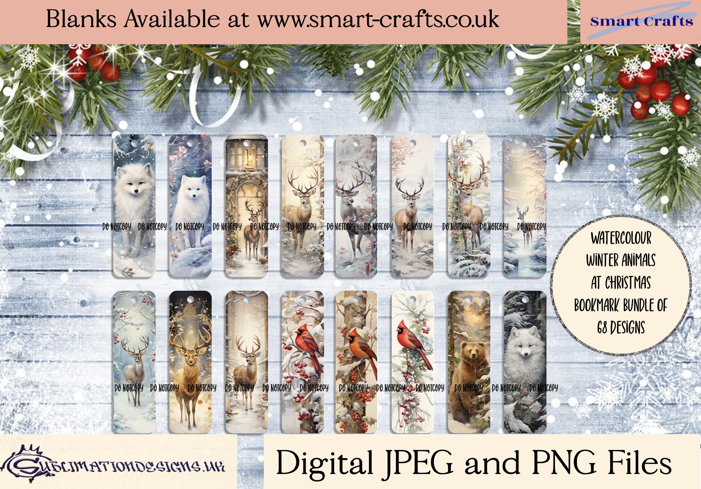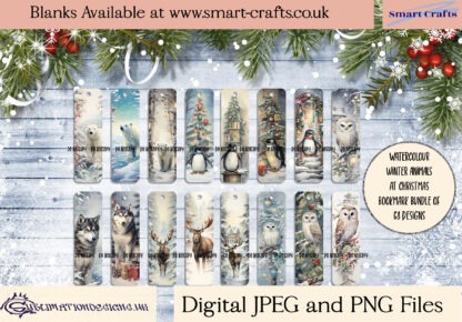 Celebrate the magic of the winter season with our Winter Animal Bookmark Bundle, featuring 68 stunning watercolour animal designs on bookmark templates. Perfect for creating unique and festive bookmarks, these designs showcase a variety of winter animals in Christmas settings, making them ideal for crafting memorable gifts or products. The templates are sized to fit Smart Crafts bookmarks (14cm x 4cm) but can be resized to suit other bookmark dimensions.