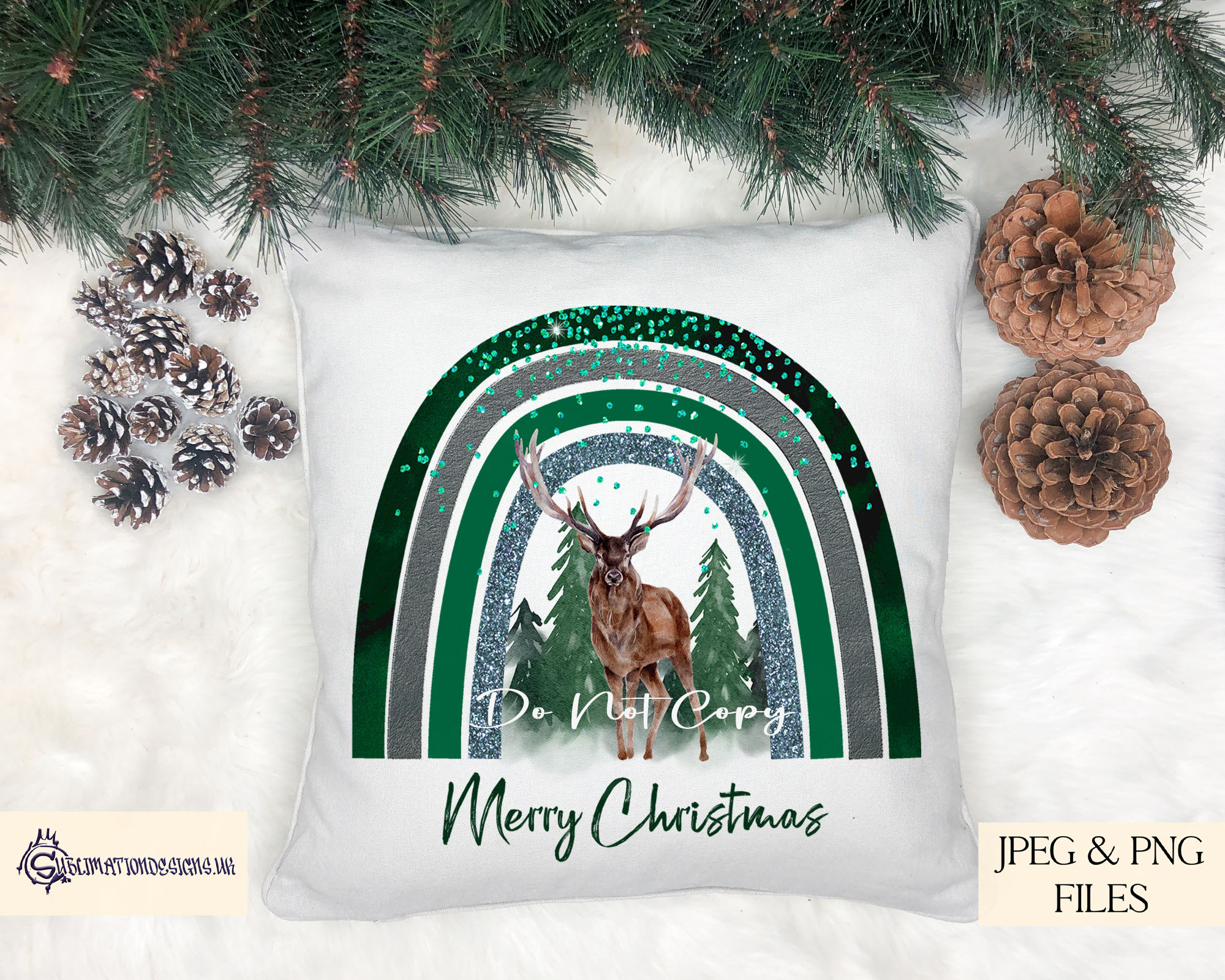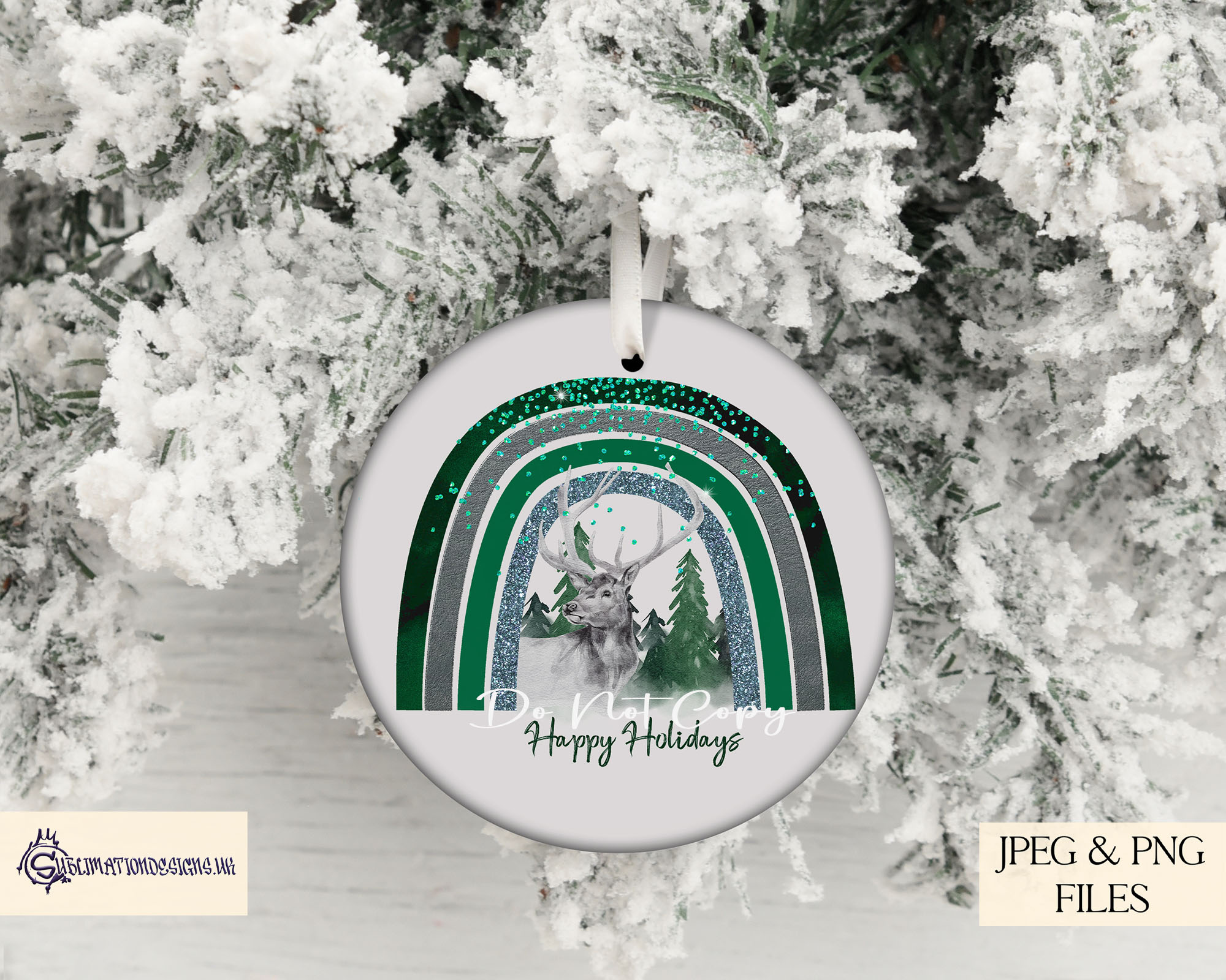 This Winter Animal Green Rainbow Design Set includes 10 enchanting designs featuring winter animals beneath a forest green glitzy rainbow. Perfect for baubles, mugs, and more. Includes high-resolution JPEG and PNG files with 5 mock-up images. Create up to 500 physical products with instant digital download.