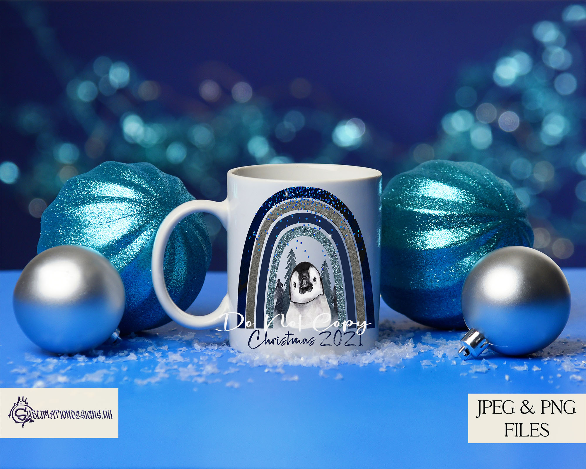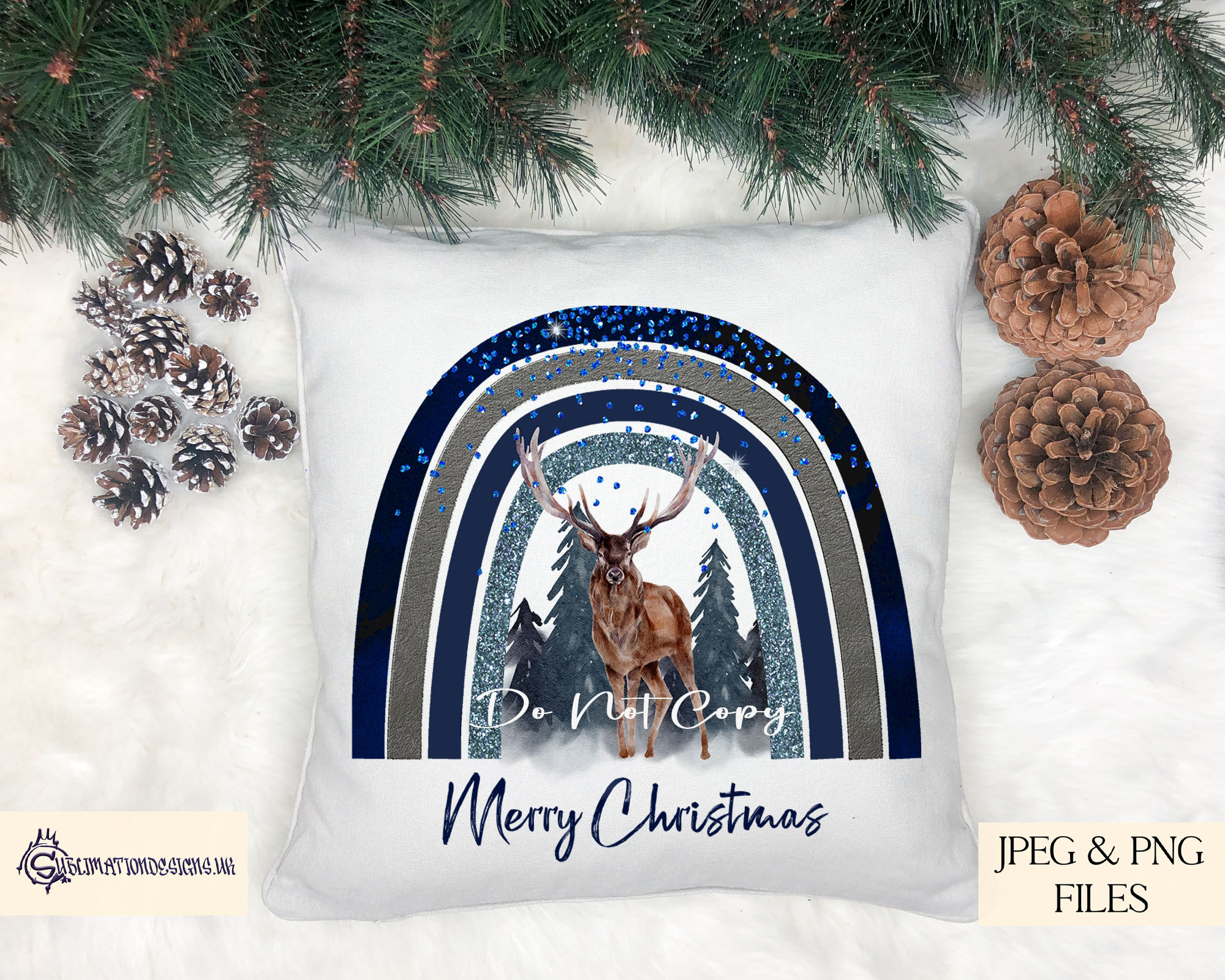 - 10 high-resolution textless designs featuring winter animals beneath a forest Navy blue glitzy rainbow: