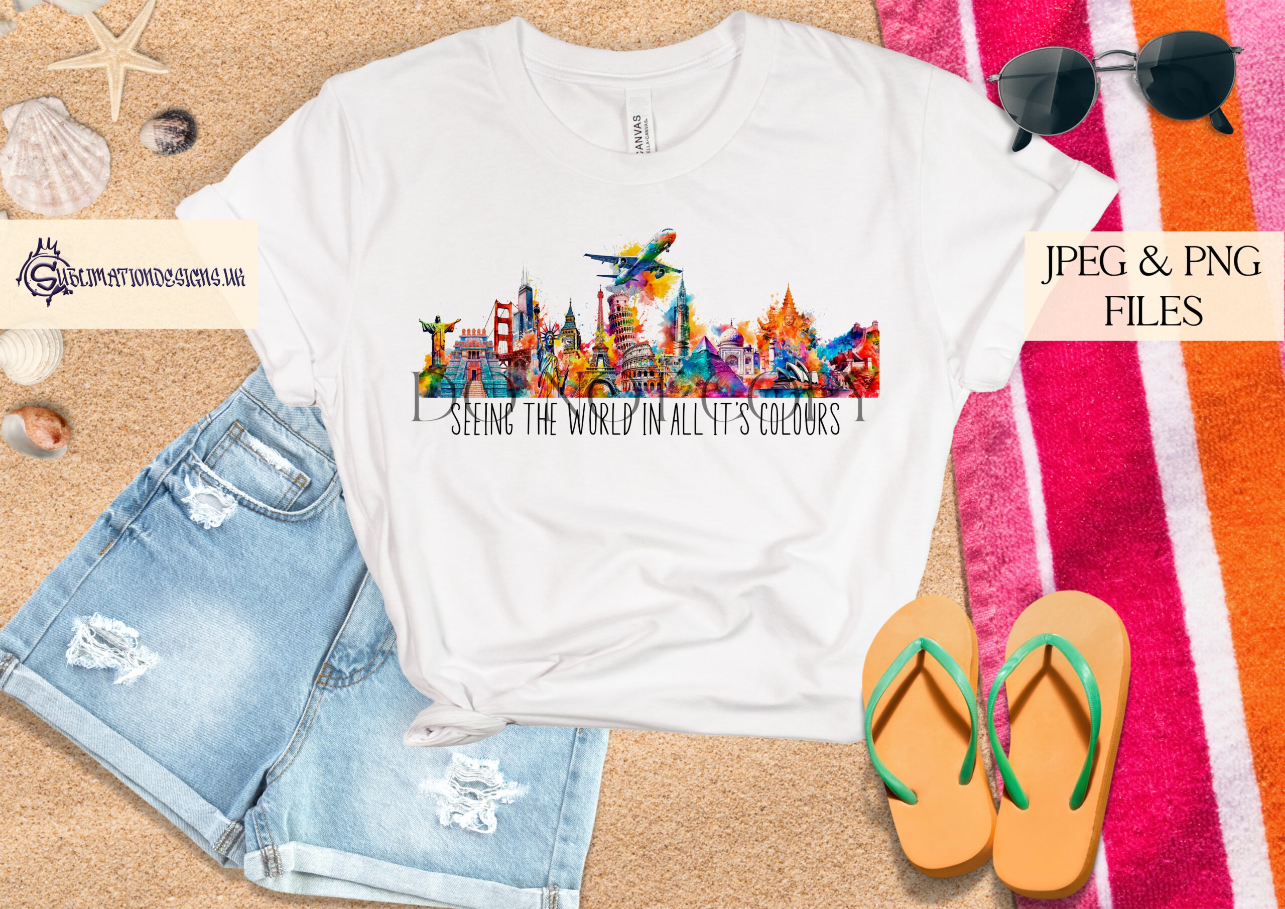 • 4 vibrant landmark designs with and without paint splash & aeroplane